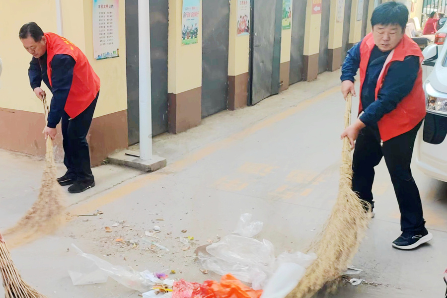 志愿者在小區清掃垃圾。桃城區衛生健康局供圖