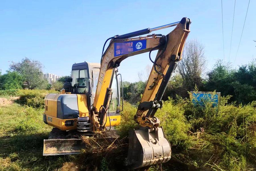 出動機械清理坑塘垃圾。張海聰 攝