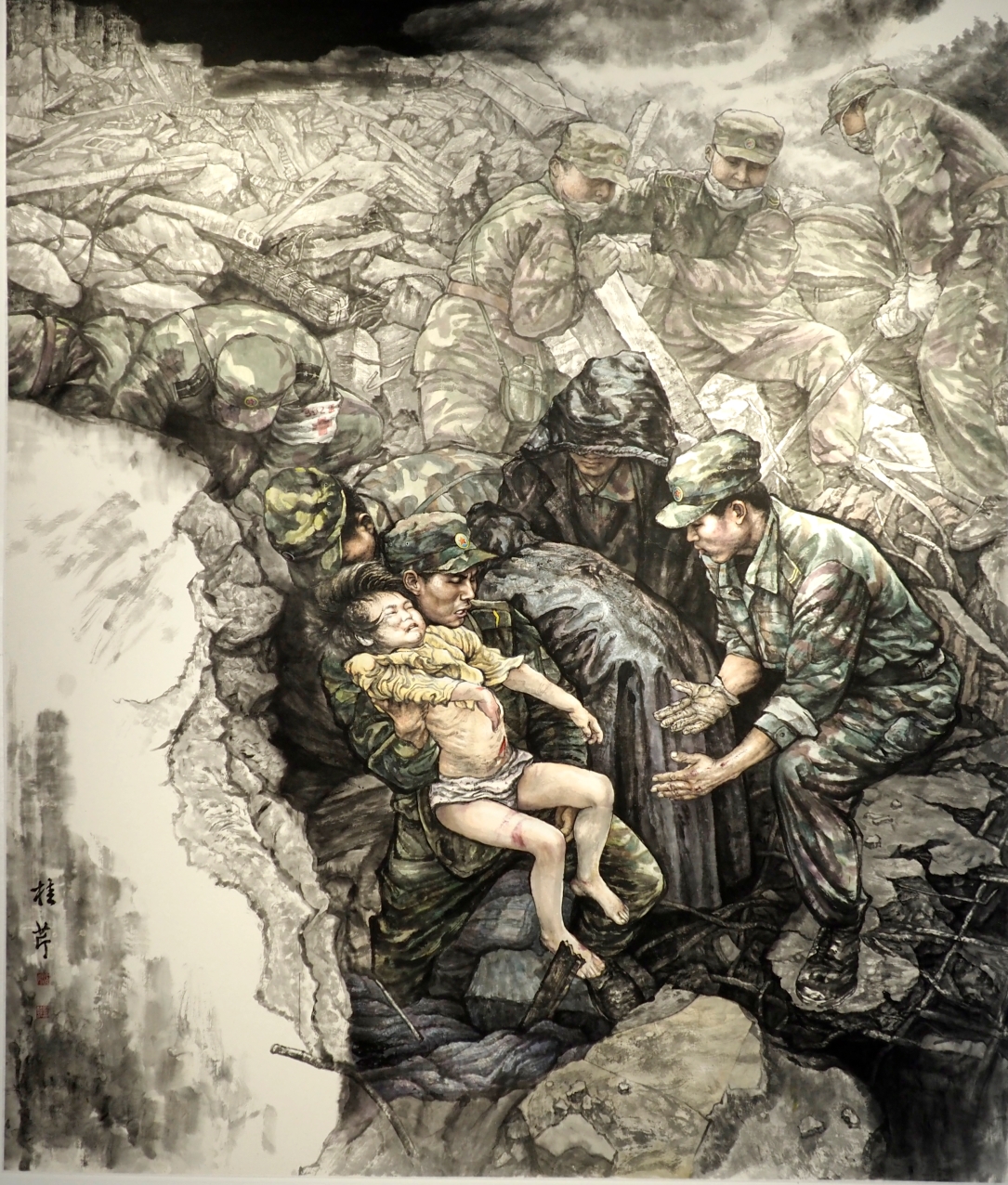 國畫《危難之處顯身手》 龐桂芹 作