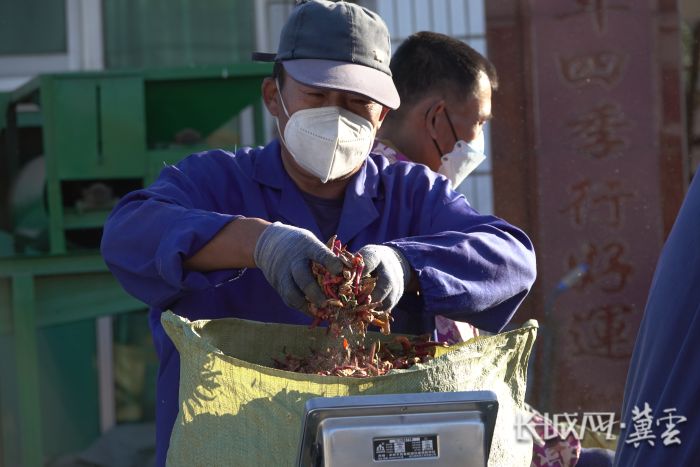 村民正在打包辣椒。長城網·冀云客戶端記者 李沛涵 攝