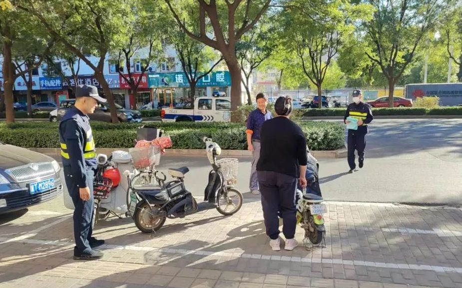 綜合執法支隊采取定點值守和機動巡查相結合的方式,通過發放《致市民群眾、沿街單位商戶告知書》,督促商戶自覺規范門前非機動車停放秩序,并做好門店周邊環境衛生維護。加大巡查力度,執法人員對巡查過程中發現的亂停亂放電動自行車等非機動車進行協助規范擺放,并積極引導來往市民按照“順向、整齊”的標準,在規定位置規范停放車輛。