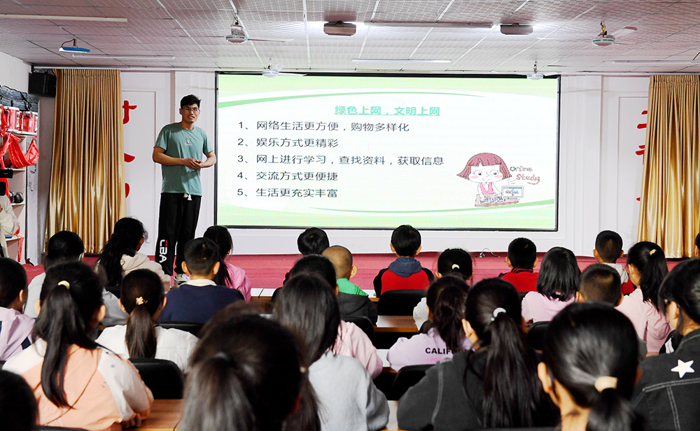 志愿者給學生們講解如何綠色上網、文明上網。崔賢飛 攝