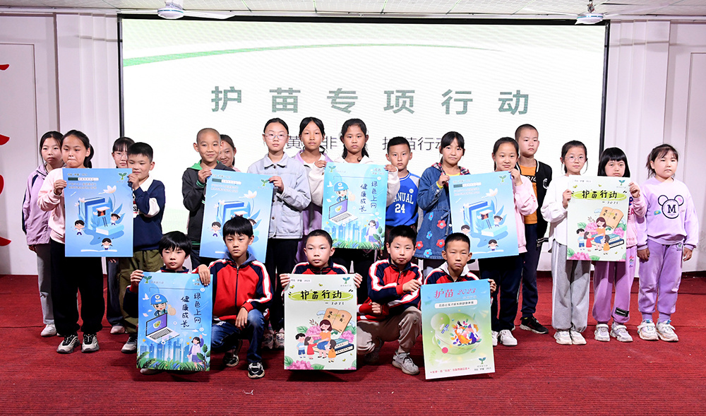 隨后,學生們圍繞主題宣傳活動,精心設計、繪制手抄報和黑板報。志愿者為學生發放了“護苗行動”的綠色書簽和正版書籍。
