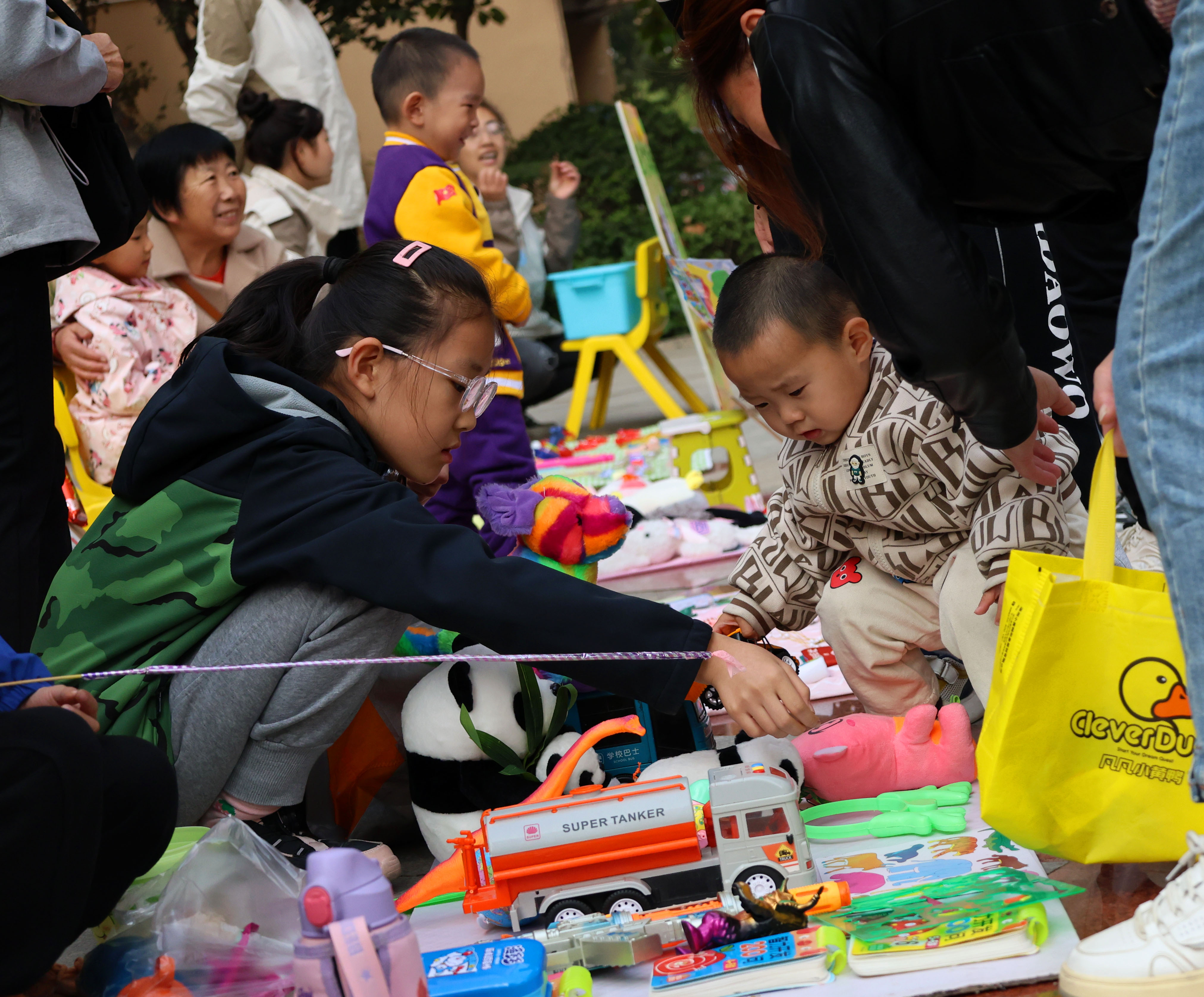 活動中,一名小朋友別出心裁地設(shè)置了套圈游戲來清理閑置的玩具。這位小朋友的媽媽說:“家里面有好多以前買的玩具,有些還很新,扔了挺可惜的,孩子就想到了用這個方法,一元換五個套圈機會。”現(xiàn)場的氣氛熱烈而活躍,不少小朋友們都成功套中了心儀的玩具,同時也結(jié)交了不少新的朋友。