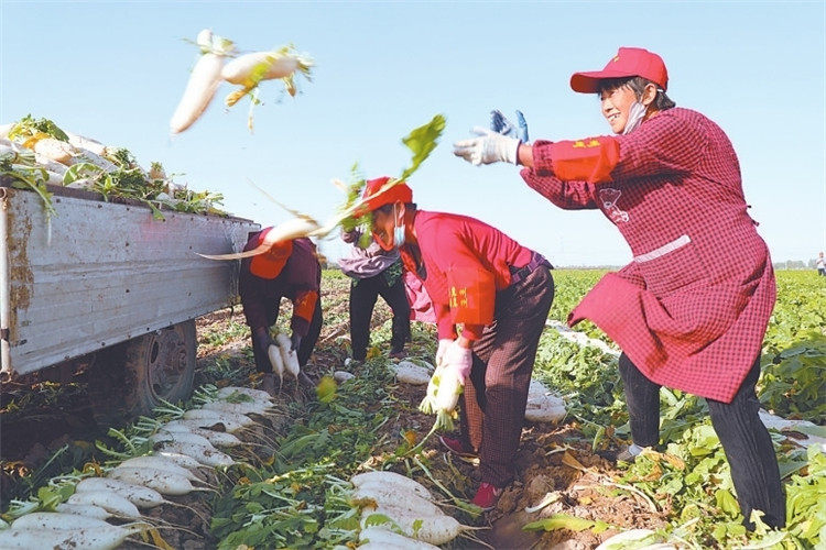 日前,走進衡水市冀州區北漳淮鄉一蘿卜種植基地,村民們正搶抓時節采收白蘿卜。一個個白蘿卜經過多道工序加工變成“凈菜”,即將銷往北京市場。