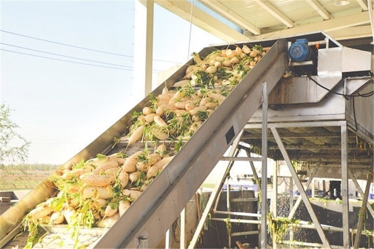 該鄉與北京新發地洽談合作,充分利用示范農場帶動作用,大力推廣白蘿卜種植200余畝,直供北京菜市場。同時,他們積極推進冷庫建設,新采購蘿卜清洗等“凈菜”加工機械,蘿卜自田間收獲后經清洗、包裝存入冷庫中保鮮,極大地節約了成本。