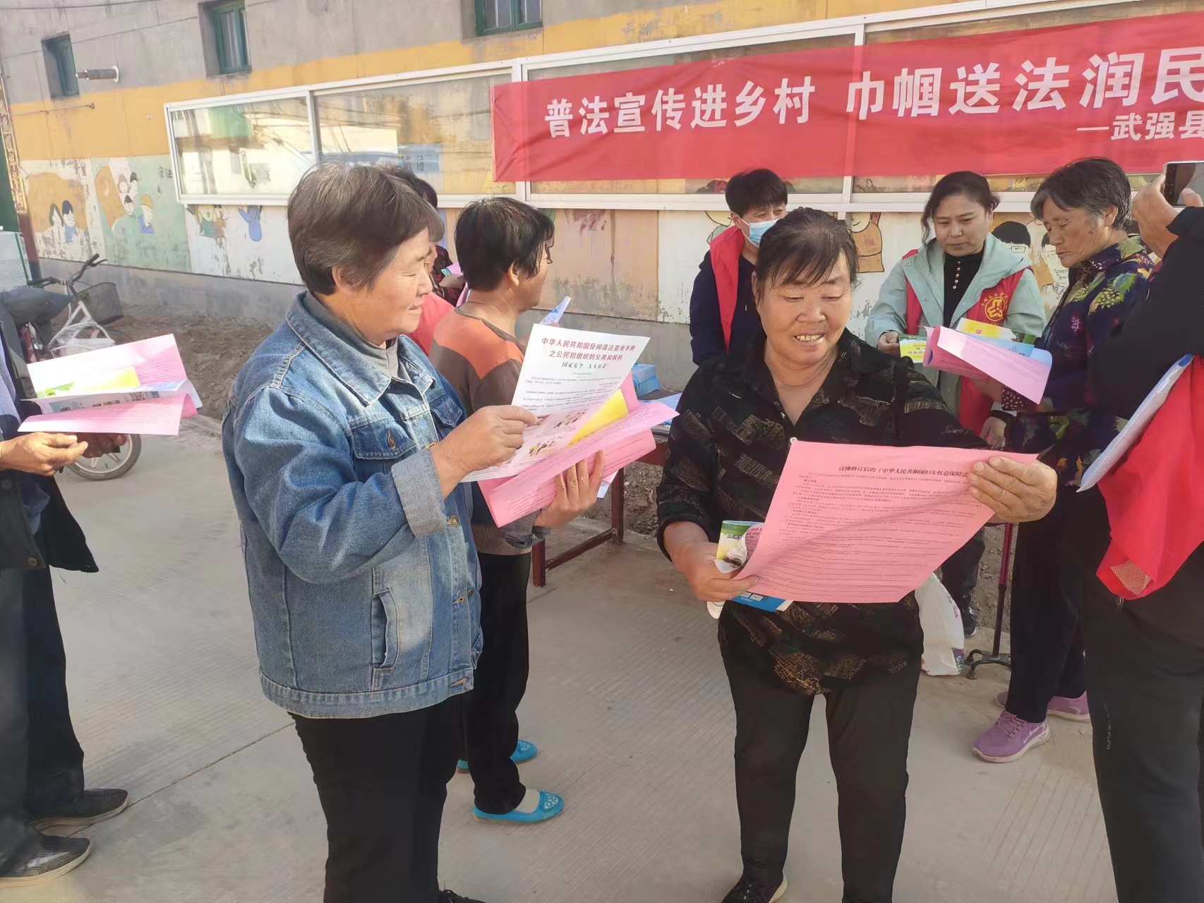 活動現場播放了全國婦聯權益部制作的《婦女權益保障法——給每一位女性綻放的力量》宣傳視頻及宣傳海報,向村婦聯主席代表贈送《婦女權益保障法釋義》《河北省反家庭暴力條例》等法律書籍。