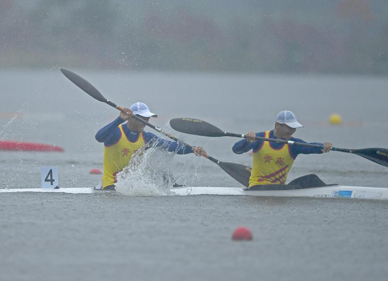 10月29日,第一屆全國學生(青年)運動會皮劃艇靜水項目比賽繼續在廣西來賓市武宣縣七星湖體育綜合體水上運動中心舉行。(新華社記者 周華/攝)