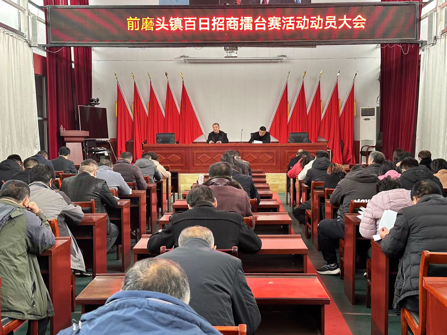 11月15日,深州市前磨頭鎮召開百日招商擂臺賽活動動員大會,動員全鎮上下搶抓時間節點、發揮工作主動、再掀招商熱潮,擂響“百日招商”戰鼓,切實提升招商引資和項目建設成效,全力推進鎮域經濟高質量發展。