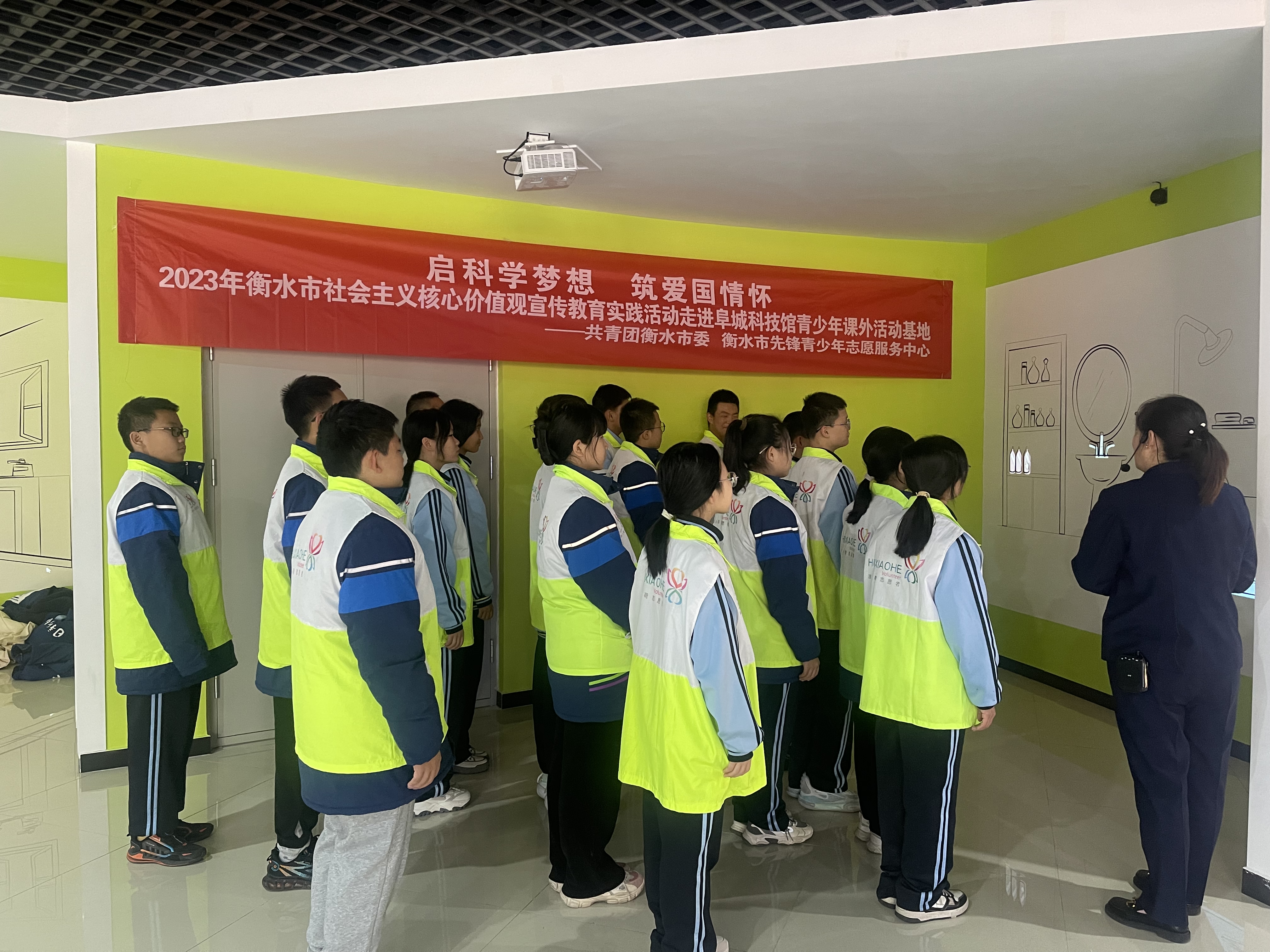 啟發科技興趣,創新探知未來。11月14日,2023年衡水市社會主義核心價值觀宣傳教育實踐活動走進阜城科技館青少年課外活動基地,45名中學生在活動中一起感受科技的神奇奧妙。