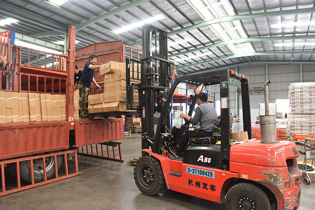 工人將貨物裝車。高雷 攝