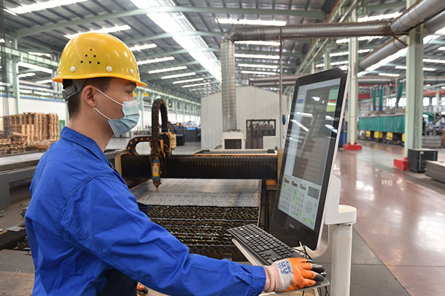工人在操作機械加工物流裝備。高雷 攝