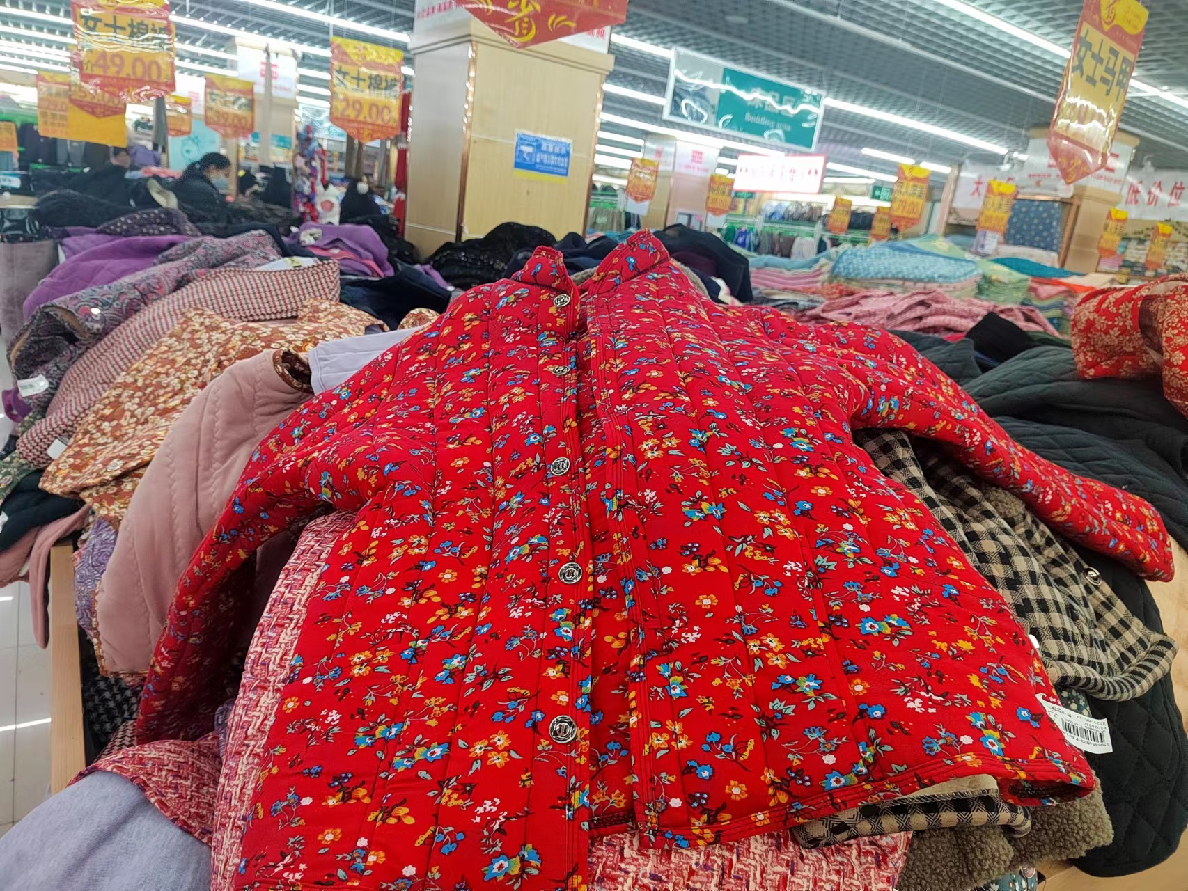 “往年也賣花棉襖,但是沒(méi)有今年賣得好。由于性價(jià)比高、款式多樣,花棉襖最近成了銷售的爆款,一些款式需要經(jīng)常補(bǔ)貨。”。這家服裝批發(fā)商城的一位工作人員告訴記者,這些花棉襖的主要材料是駝絨和棉,保暖效果不錯(cuò),有成人款和兒童款。入冬以來(lái),他們便上架了各種款式和不同價(jià)位的花棉襖,一直都賣得很好,除了中老年群體購(gòu)買外,也受到了一些年輕人的青睞,年輕人尤為偏愛(ài)大紅色、粉色且?guī)в心档せǖ让褡鍌鹘y(tǒng)元素的花色。