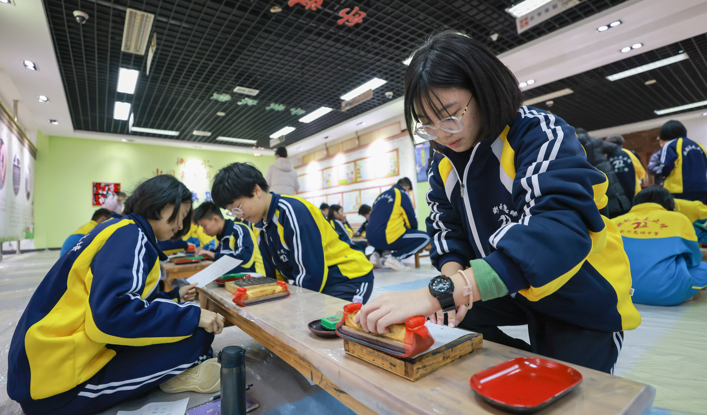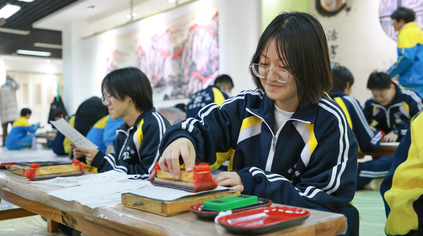 濱湖志臻師生在劉新崗館長的親自解說下,先后參觀了衡水中國書畫博物館木活字館以及“水韻文華”“書畫燕趙”“宋元遺珍”“明清法書”“名噪東瀛”等專題展廳。學生們還通過刷墨、覆紙、印拓等工序,身臨其境地感受到活字印刷術獨特的魅力。
