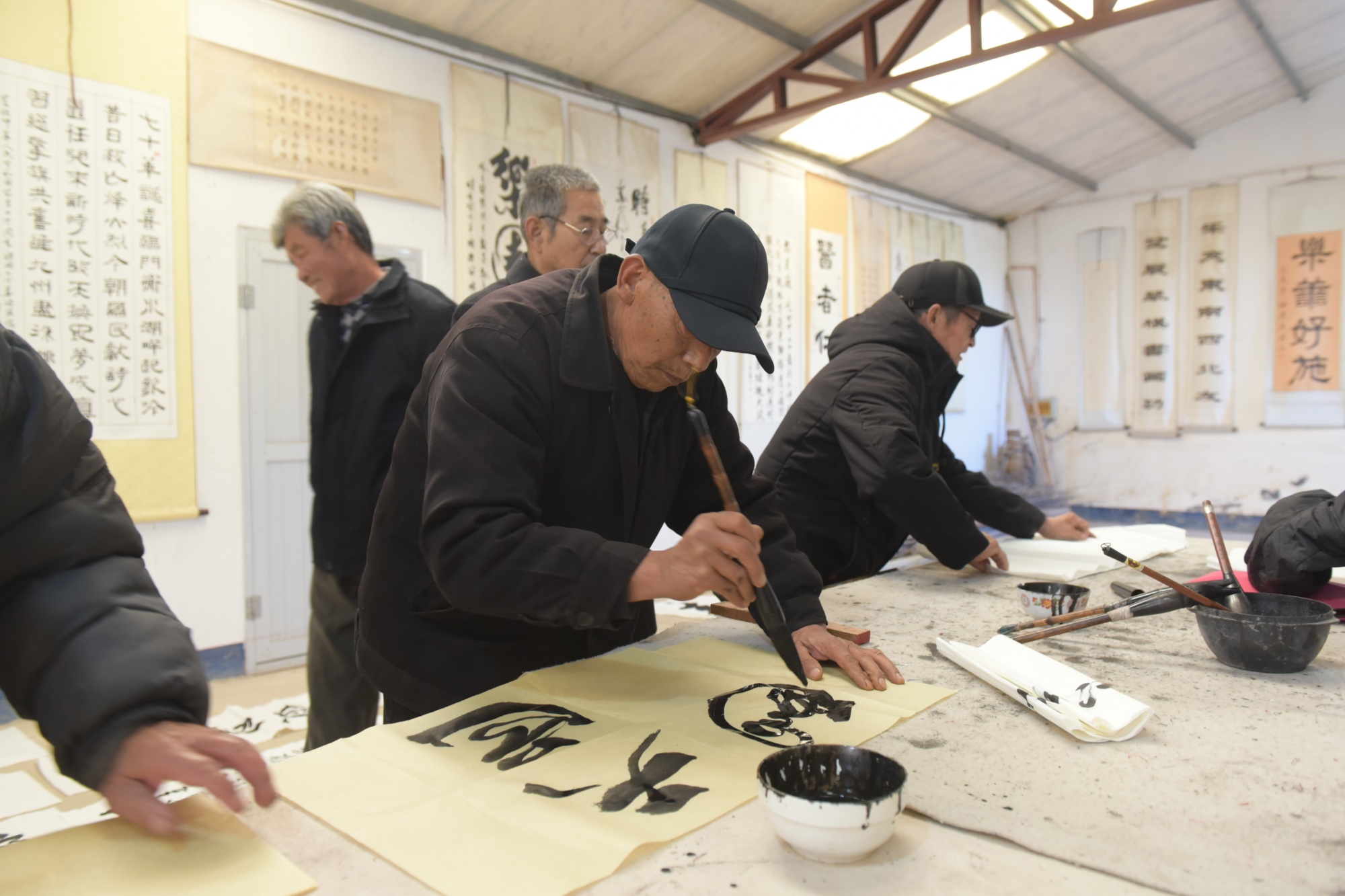 “現在是農閑時候,閑暇時間較多,我經常來這里練練書法,與其他書法愛好者交流學習。”書法愛好者王滿倉說,現在老百姓日子越過越好,精神生活也富了起來。