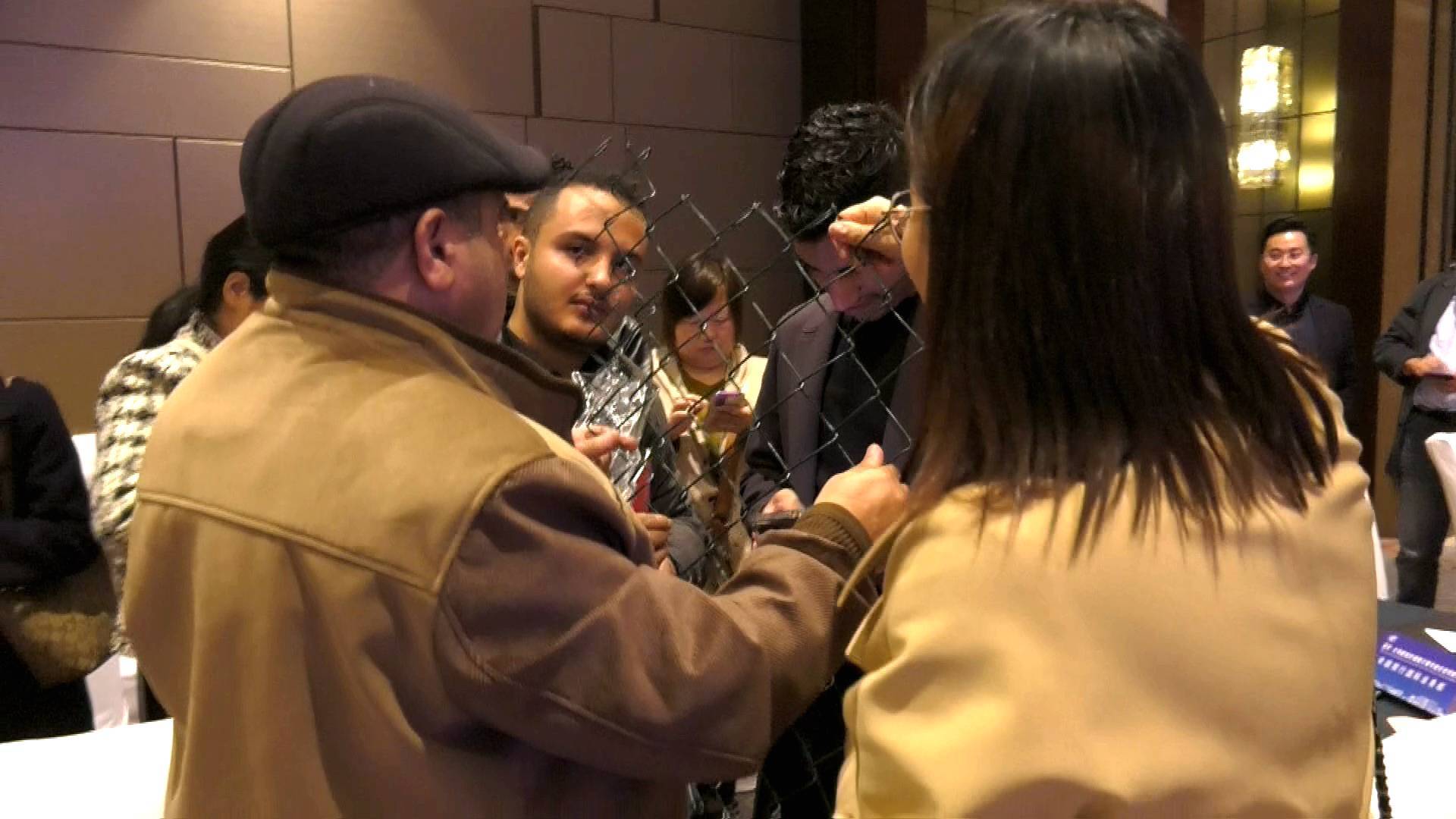 向外賓介紹絲網制品。安平縣融媒體中心供圖