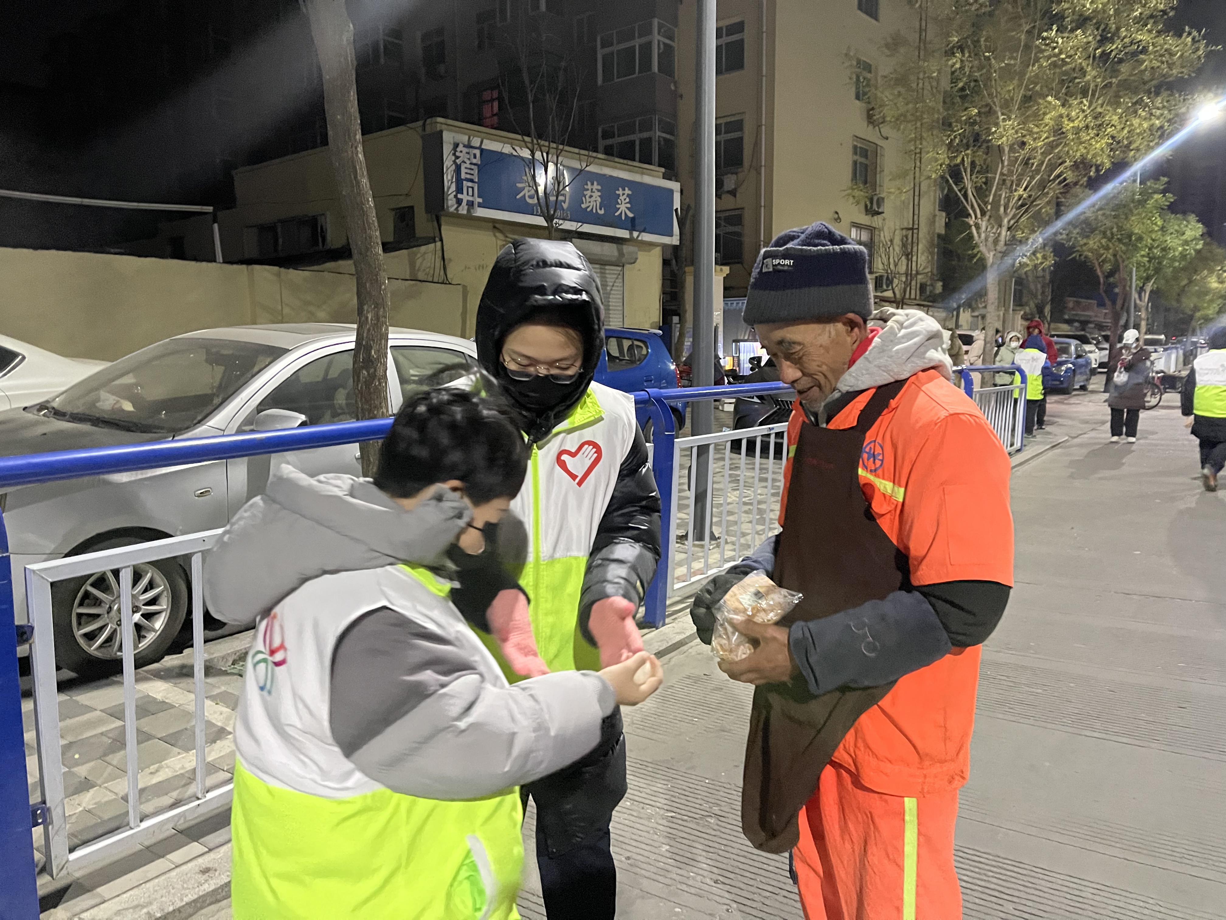當天清晨,天還未亮,志愿者們便帶著米粥、面包、雞蛋等早餐來到市區(qū)街道上,看到正在冷風中清掃著街道的環(huán)衛(wèi)工人后,志愿者們立刻跑上前去,為他們送上愛心早餐。“大爺,這是送給您的愛心早餐,你們辛苦啦!”“也感謝你們的關(guān)心,這份早餐很熱乎!”“太謝謝啦,很好吃!”……一份份熱氣騰騰的早餐,不僅溫暖了環(huán)衛(wèi)工人們的胃,也溫暖了他們的心。