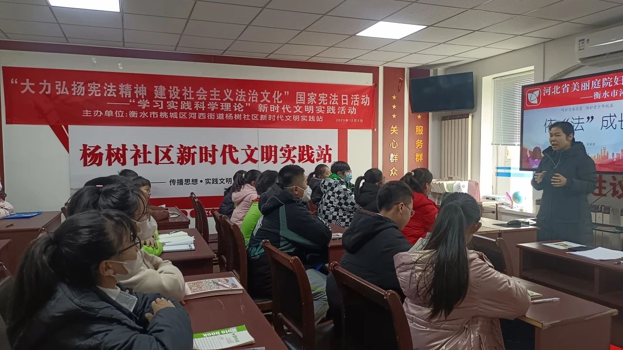 “同學(xué)們,你們知道國(guó)家憲法日是每年的幾月幾日嗎?今年又是我國(guó)第幾個(gè)憲法宣傳日呢?”12月4日,衡水市桃城區(qū)楊樹(shù)社區(qū)新時(shí)代文明實(shí)踐站,在老師和青少年的熱情互動(dòng)中,一堂以“大力弘揚(yáng)憲法精神 建設(shè)社會(huì)主義法治文化”為主題的“保護(hù)青春花蕾 維護(hù)青少年權(quán)益”社區(qū)心課堂開(kāi)課了。