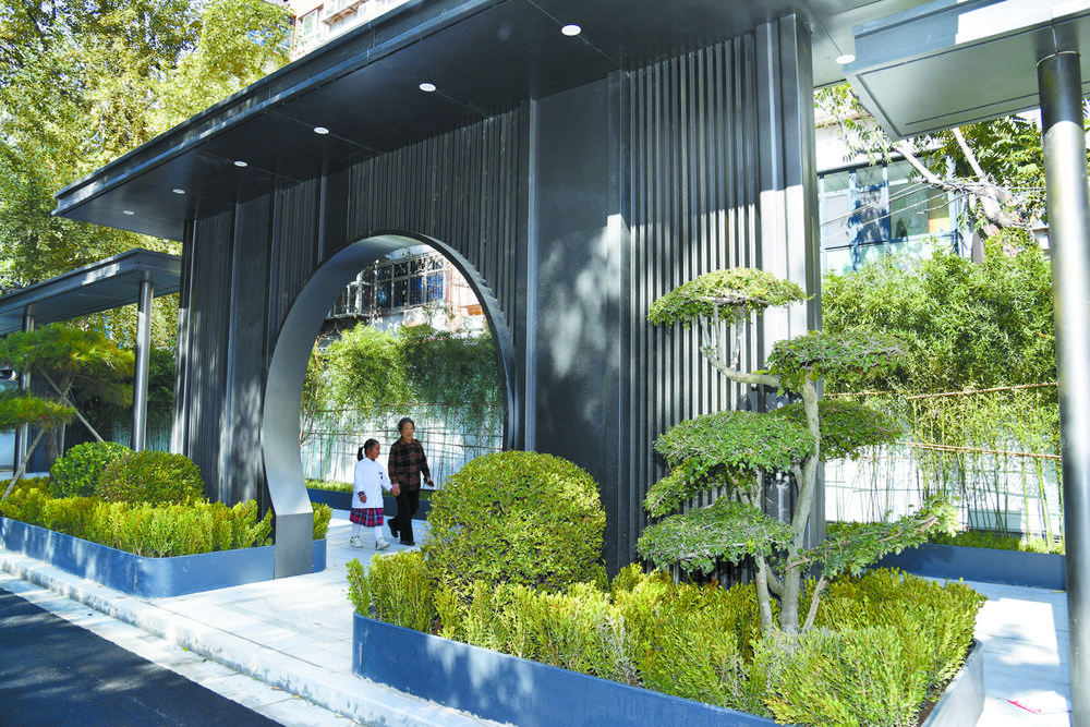 在石家莊市裕華區新打造的精品街道——小馬北路,設計新穎的竹韻廊景觀吸引了市民的目光。 記者 張 震 攝