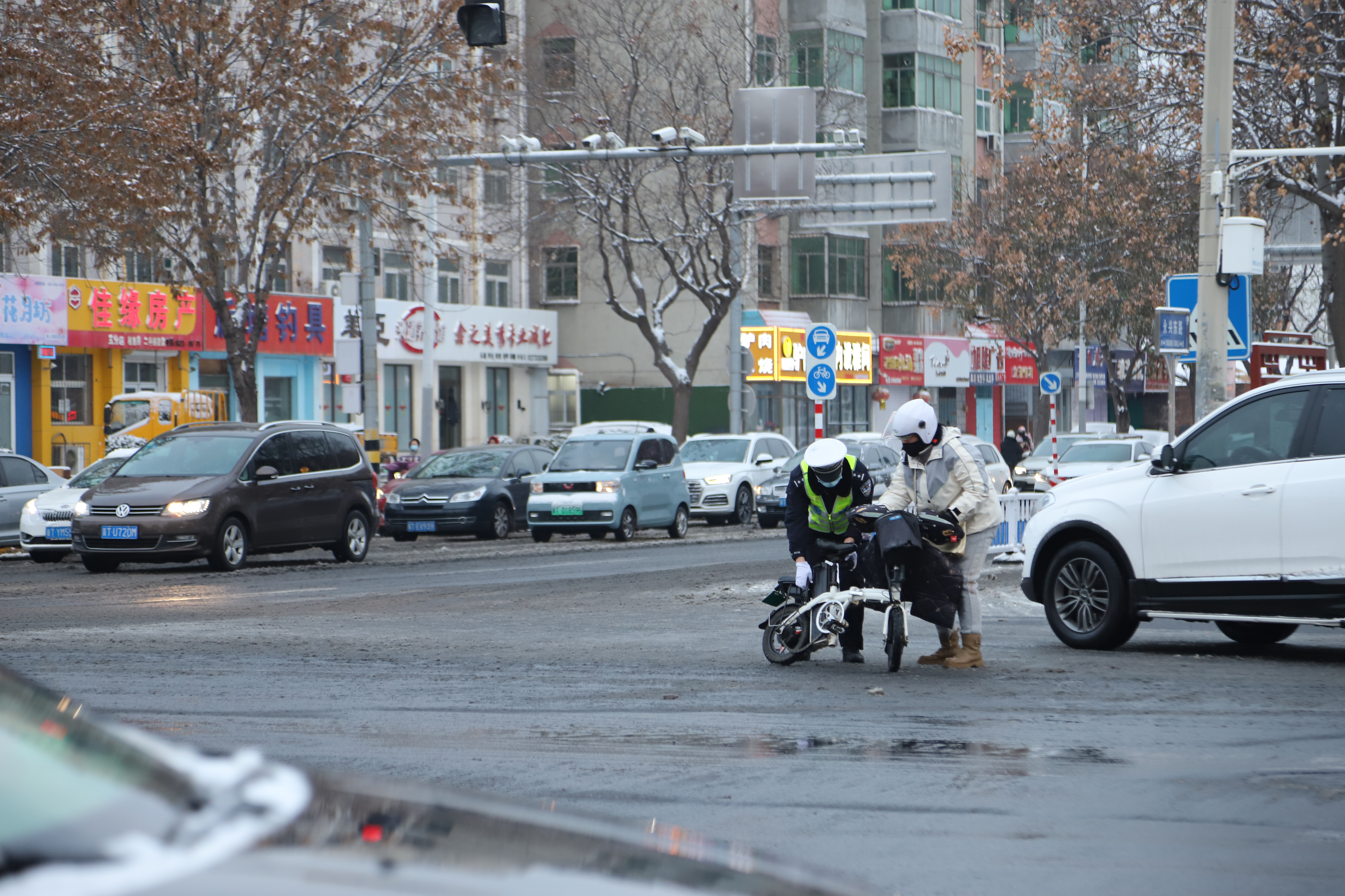 市交警支隊負責人提醒市民,雪天駕車外出要注意減速慢行,保持安全車距,切勿強行超車、會車,遇到緊急情況,切勿急打方向或緊急制動,以防車輛側滑發生危險,泥濘路面,仔細觀察道路情況,確認安全通過。行人、非機動車要時刻關注路面,避開結冰路段,以保證出行安全。