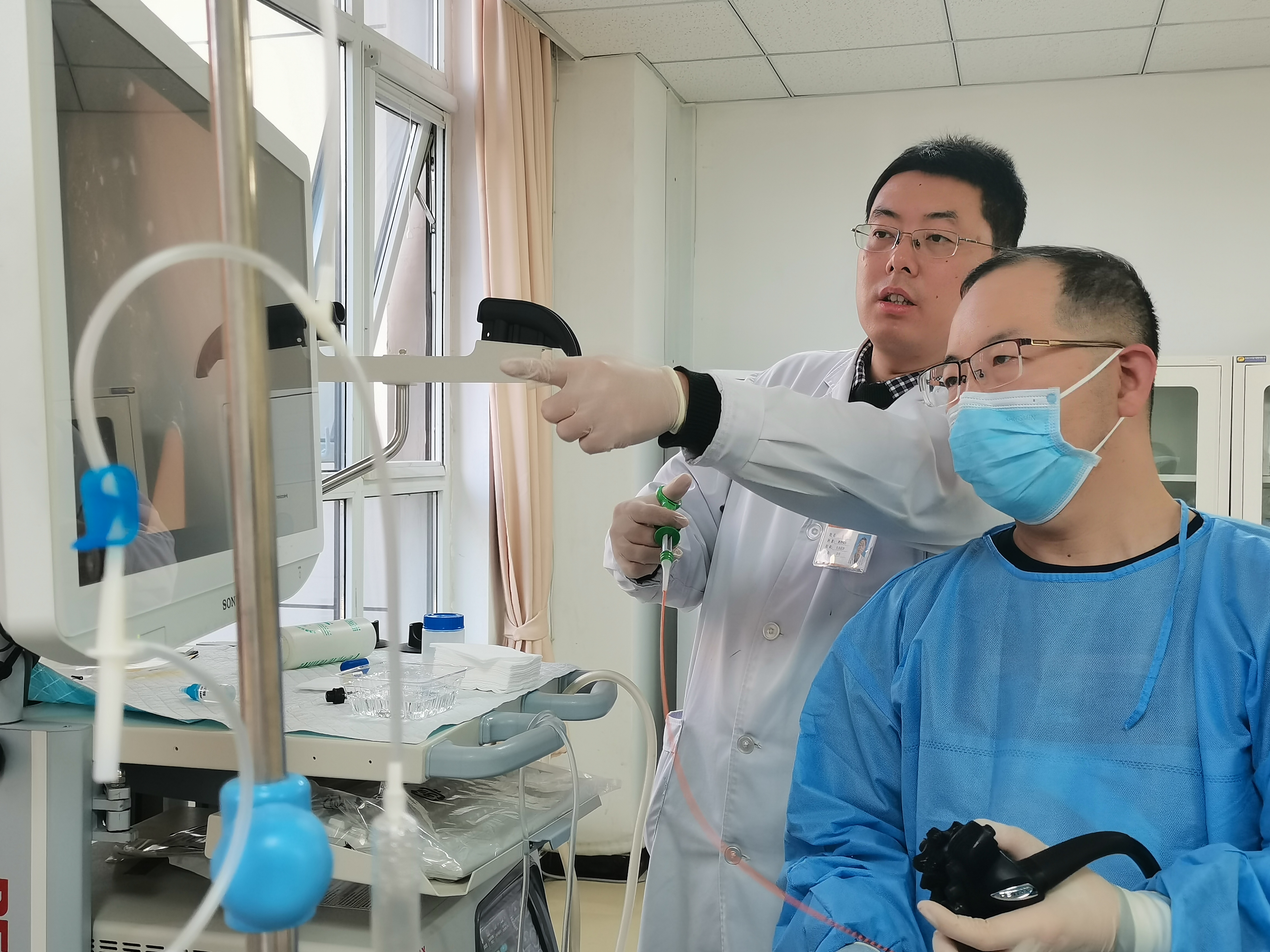 鄂輝及其團隊在內鏡下先后用碎石網籃、圈套器、異物鉗,對結石一遍遍粉碎。由于結石巨大,混合著粉紅色山楂皮等食物殘渣,越到中心位置硬度越高,再加上患者胃內已有出血狀況,操作力度必須適中,所以碎起石來非常困難。整整用了三個小時,碎石手術大功告成,患者胃黏膜等部位絲毫未損。