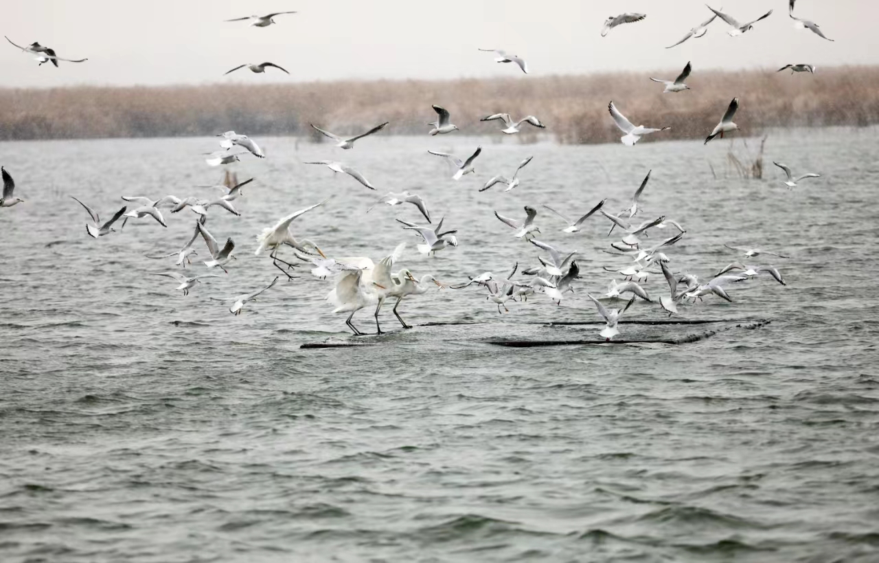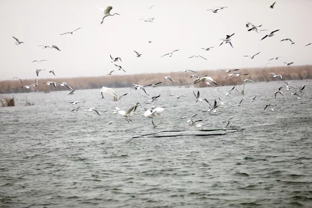 衡水湖國家級自然保護區(qū)工作人員介紹,他們加強越冬期候鳥保護宣傳,實行24小時巡護值守,確保越冬候鳥安全棲息。目前,實施了濕地生態(tài)效益補償項目,對保護區(qū)內(nèi)因鳥類取食而造成損失的農(nóng)戶進行補償,既保障了鳥類的食物來源,也提高了周邊農(nóng)戶、居民的愛鳥護鳥意識。同時,通過科學開展生態(tài)補水、合理調(diào)控水位,湖堤做生態(tài)修復(fù),確保水生植物健康生長,為鳥類營造良好的棲息環(huán)境和覓食區(qū)域。