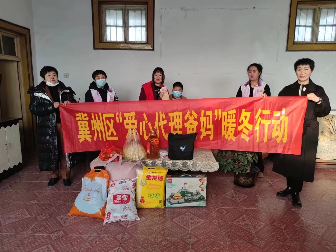 市婦聯、市女企協會主要負責同志來到武邑縣、桃城區看望全國春蕾女童、公安烈士子女,為她們送去慰問金和棉衣等慰問品。景縣婦聯召開“愛心代理爸媽”暖冬行動動員會和推進會,組織“愛心代理爸媽”深入困境兒童家中,細心查看家庭過冬設施,宣傳防一氧化碳中毒等安全知識,了解孩子的學習生活需求。冀州區婦聯開展“愛心代理爸媽”暖冬行動,為困境兒童送去慰問金及冬衣、米、油等生活和學習用品。