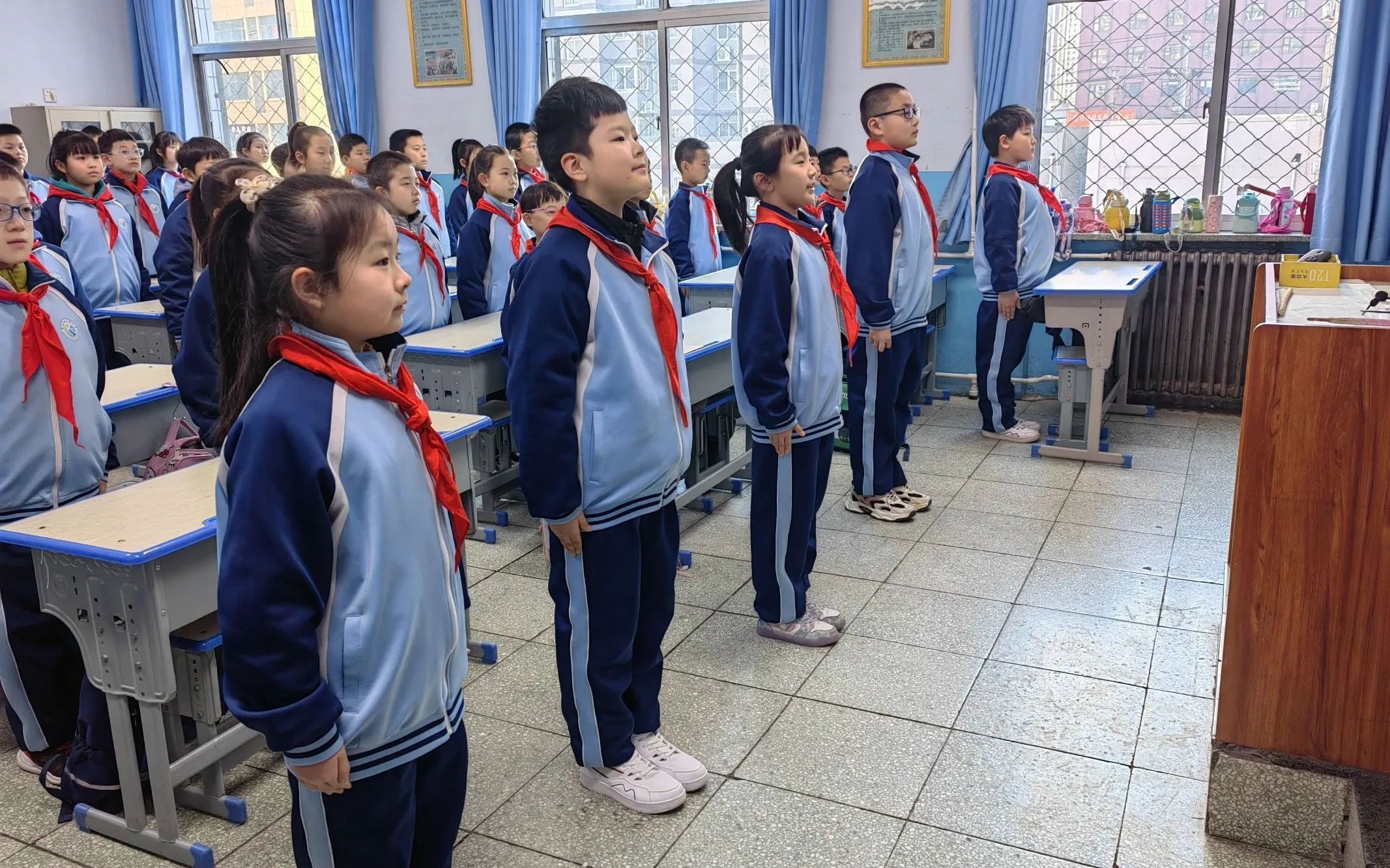 高年級的同學們通過誦讀經典,盡情抒發自己的豪情壯志和家國情懷。“三十功名塵與土,八千里路云和月”同學們用鏗鏘有力的語調誦讀出《滿江紅》中的豪邁情懷;“少年智則國智,少年富則國富,少年強則國強”,這是《少年中國說》帶給同學們的進取力量。