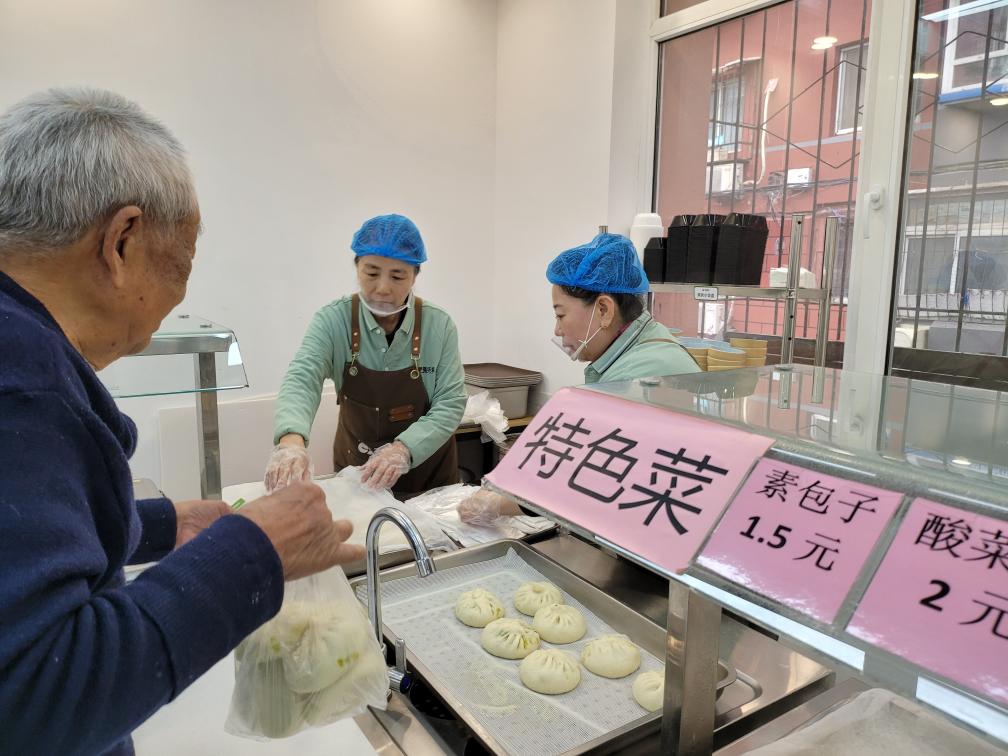 ??臨近中午,遼寧省沈陽市大東區(qū)東勝社區(qū)網(wǎng)格員在群中發(fā)布了“今日菜譜”:燒排骨、燒茄子、雪里紅燉豆腐……88歲的居民唐孝周來到社區(qū)開辦的惠民食堂,購買了一菜一飯,和鄰居邊聊邊吃。
