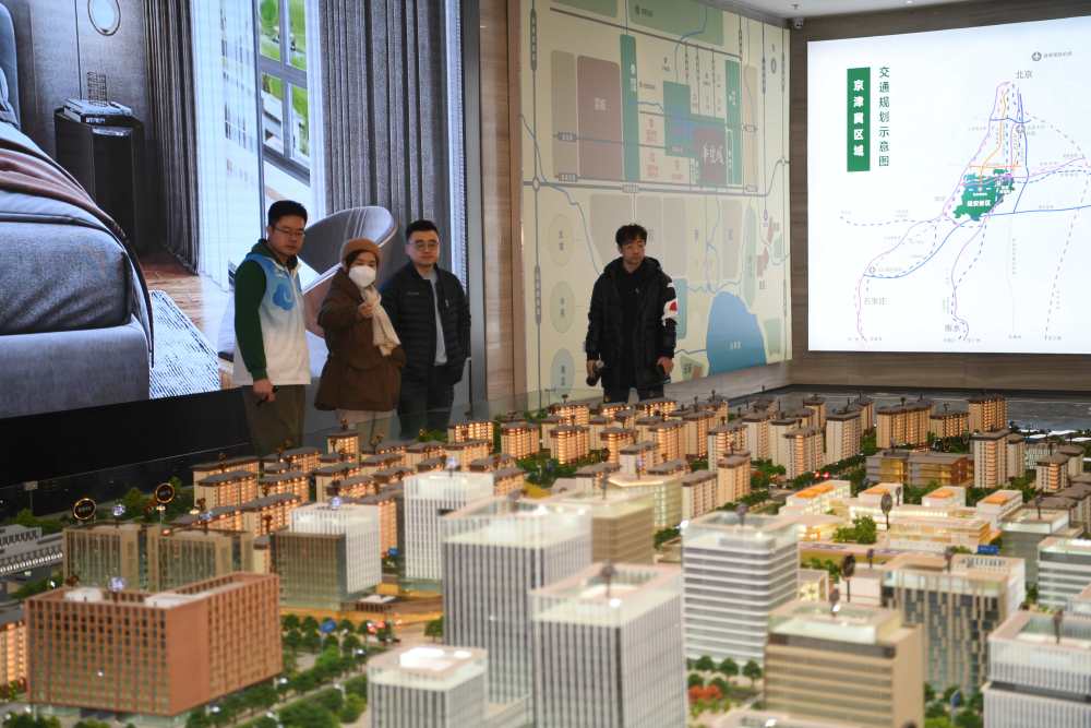 購房者在河北雄安新區某項目售樓部查看沙盤(2月25日攝)。新華社記者 朱旭東 攝