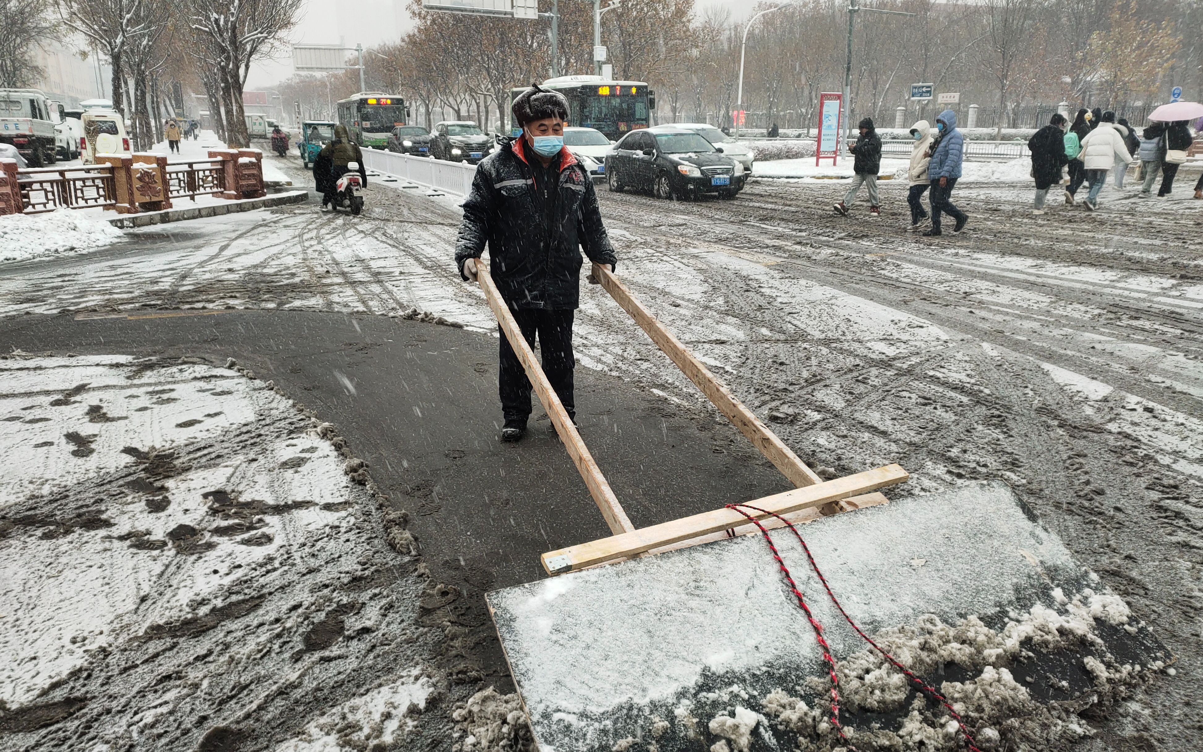 12月28號凌晨5時,當整座城市還處于一片沉寂時,環衛工酉群牛戴著棉手套、帽子,拿著掃帚、鐵鍬,推著小車,揮灑著汗水守護著這座城的潔凈。談到新年愿望,他說:“希望我們的城市更潔凈更美麗?!?br>