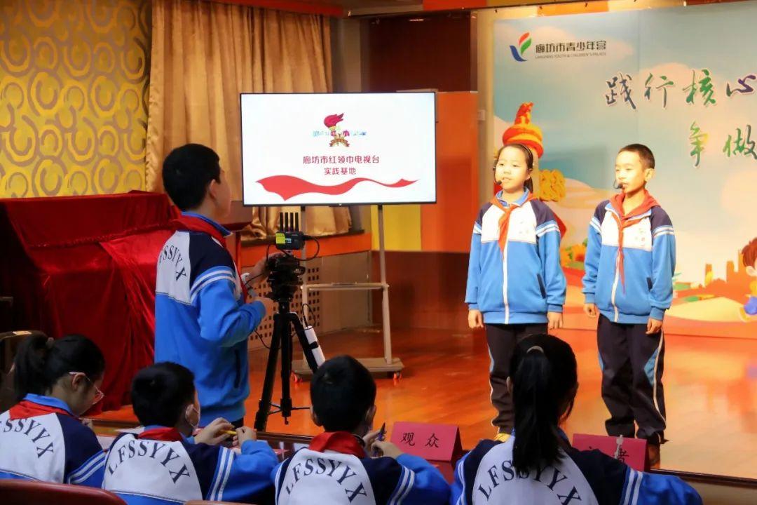 圖為廊坊市級青少年網絡文明素養實踐教育基地——市青少年宮開展的紅領巾電視臺體驗活動。