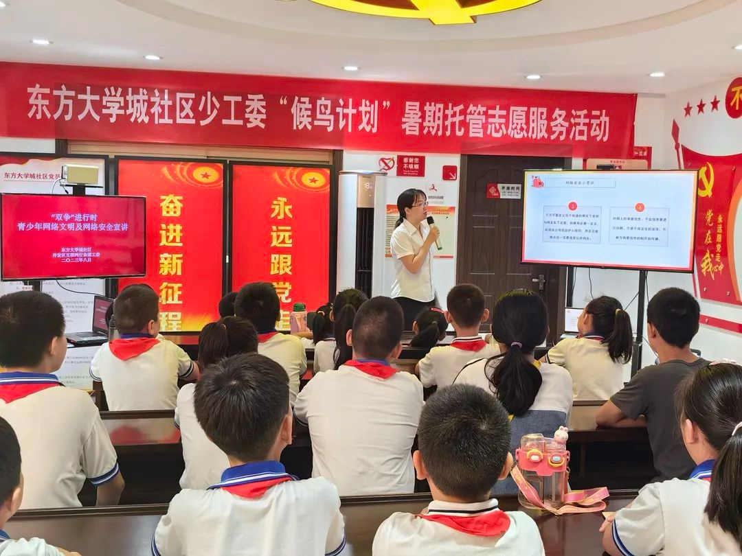 圖為廊坊開發區區級網絡文明素養實踐教育基地——東方大學城社區居委會開展的“雙爭”進行時——青少年網絡文明及網絡安全宣講主題活動。