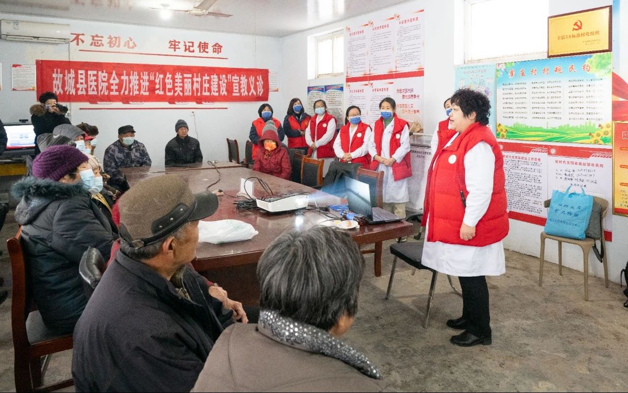 故城縣霍莊村是一個遠近聞名的英雄村,是省委組織部確定的48個推動紅色村組織、振興建設紅色美麗村莊之一。居艷梅是黨的二十大代表、全國優秀共產黨員,作為向霍莊村選派“黨建加強班”中的模范人物,她充分發揮示范帶動作用,帶領專家團隊免費為前來咨詢的群眾測血糖、血壓、超聲、心電圖等健康檢查,講解高血壓、高血糖等常見疾病的控制方法。