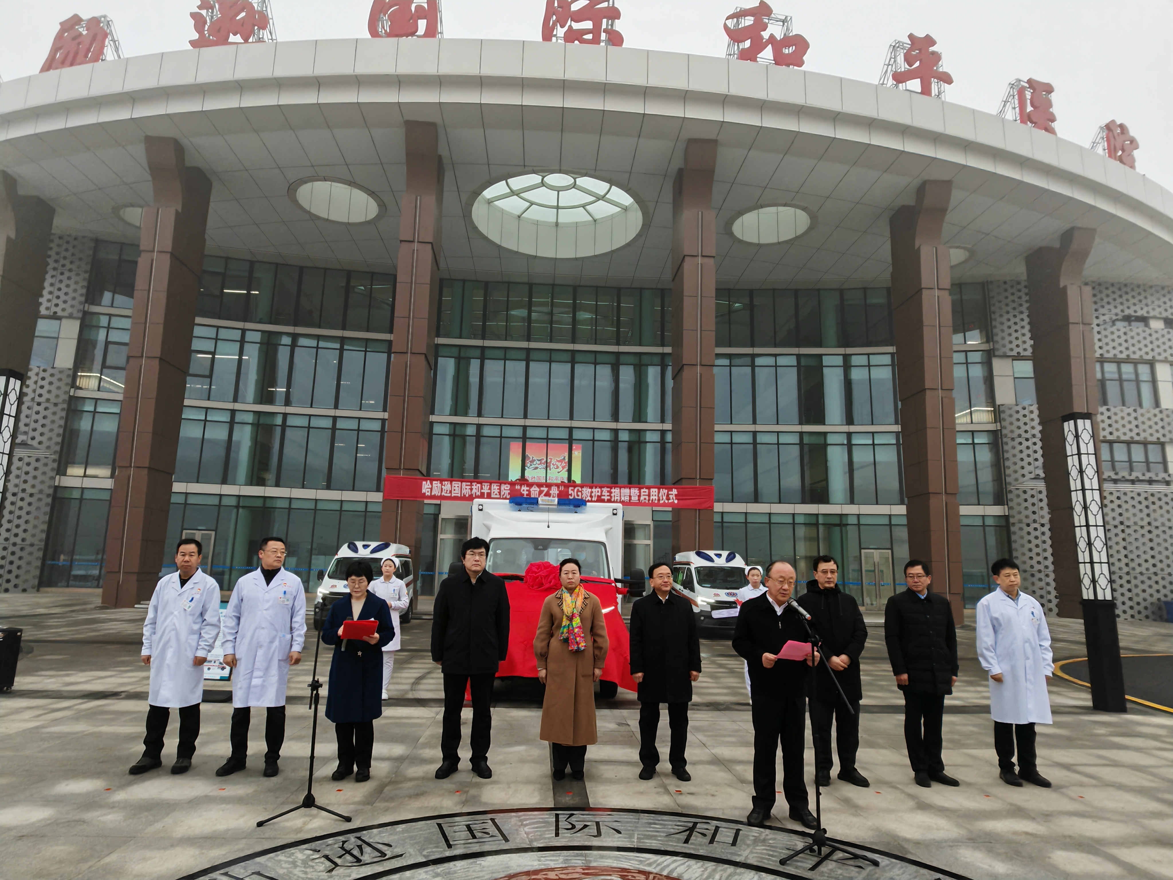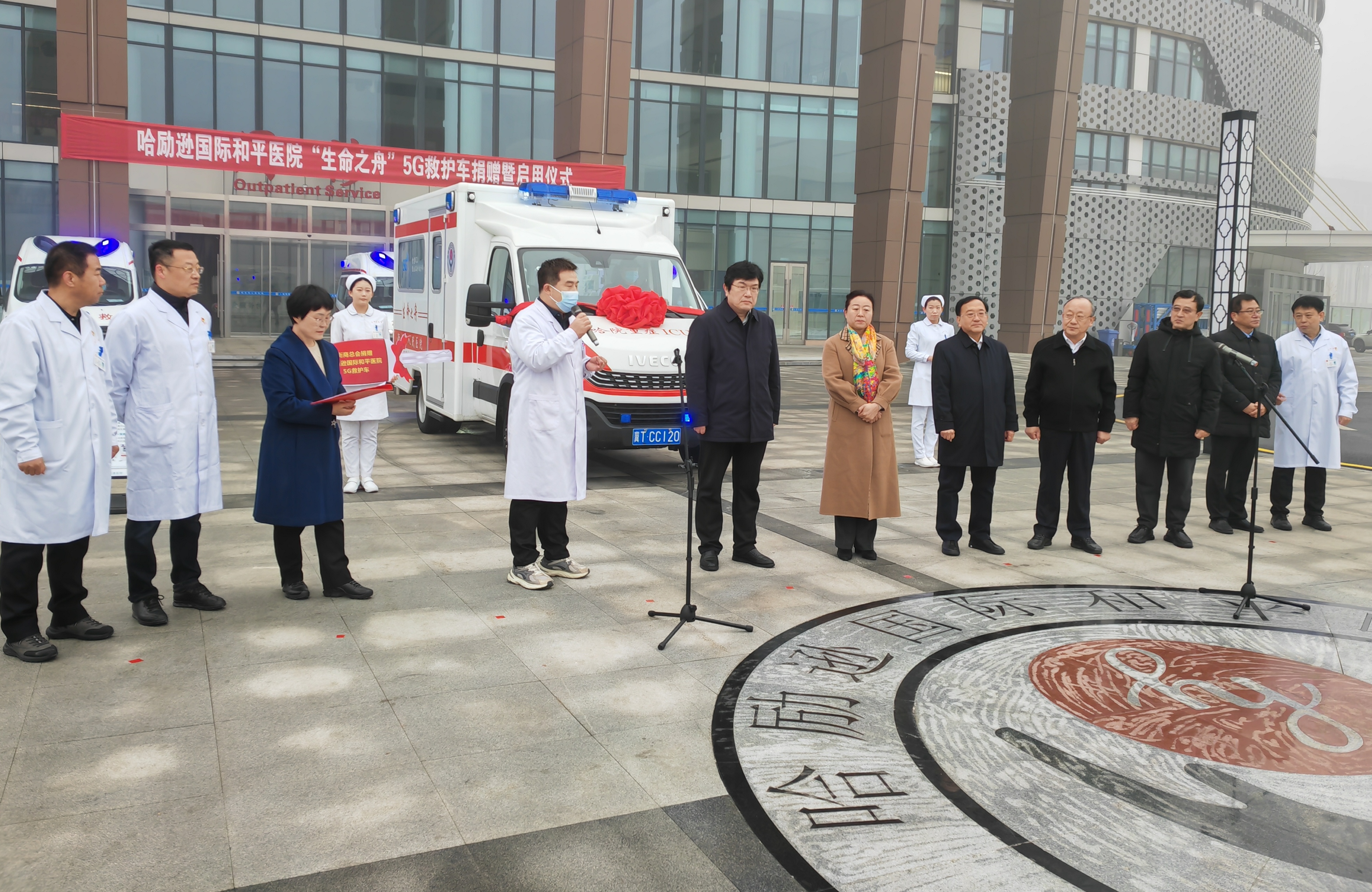 衡水市人民醫(yī)院(哈勵遜國際和平醫(yī)院)5G重癥監(jiān)護(hù)救護(hù)車捐贈暨啟用儀式現(xiàn)場。
