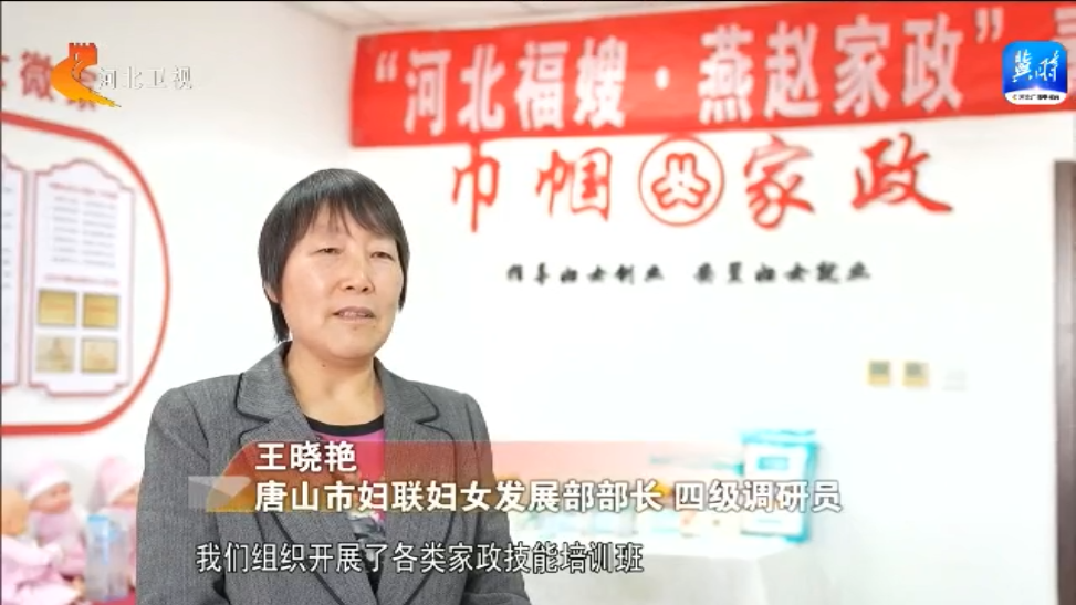 在"河北福嫂 燕趙家政"(提質擴容)民生工程當中,我們組織開展了各類家政技能培訓班,唐山巾幗家政技能大賽、河北省巾幗家政大集,一年當中唐山選樹了市級星級巾幗家政基地33個,星級唐山福嫂158名,組織開展各類家政技能培訓班796場次,有1.3萬名婦女在家政這個領域實現了穩定就業。