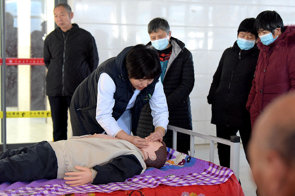 醫(yī)護(hù)人員演示心肺復(fù)蘇術(shù)。李金燦 攝