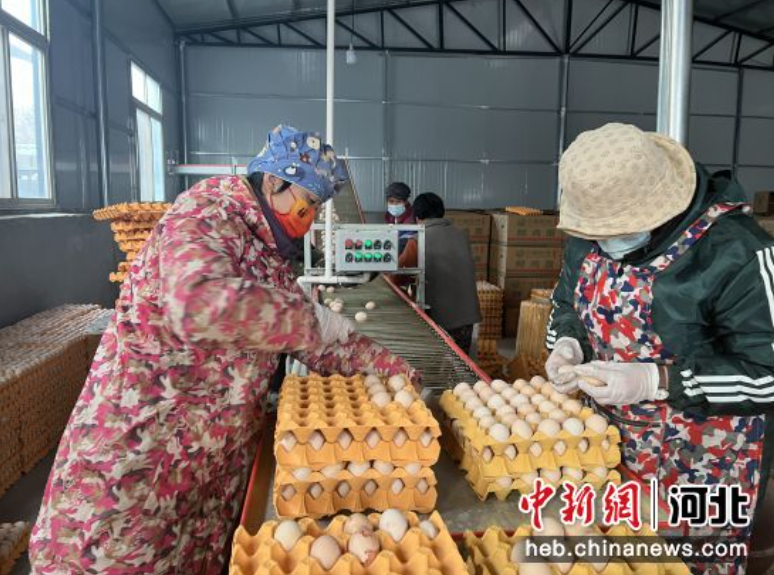 近日,走進河北省深州市辰時鎮一蛋雞養殖基地,一枚枚新鮮的雞蛋隨著傳輸帶緩緩移動,從雞舍輸出,送至包裝車間進行裝盤、打包。