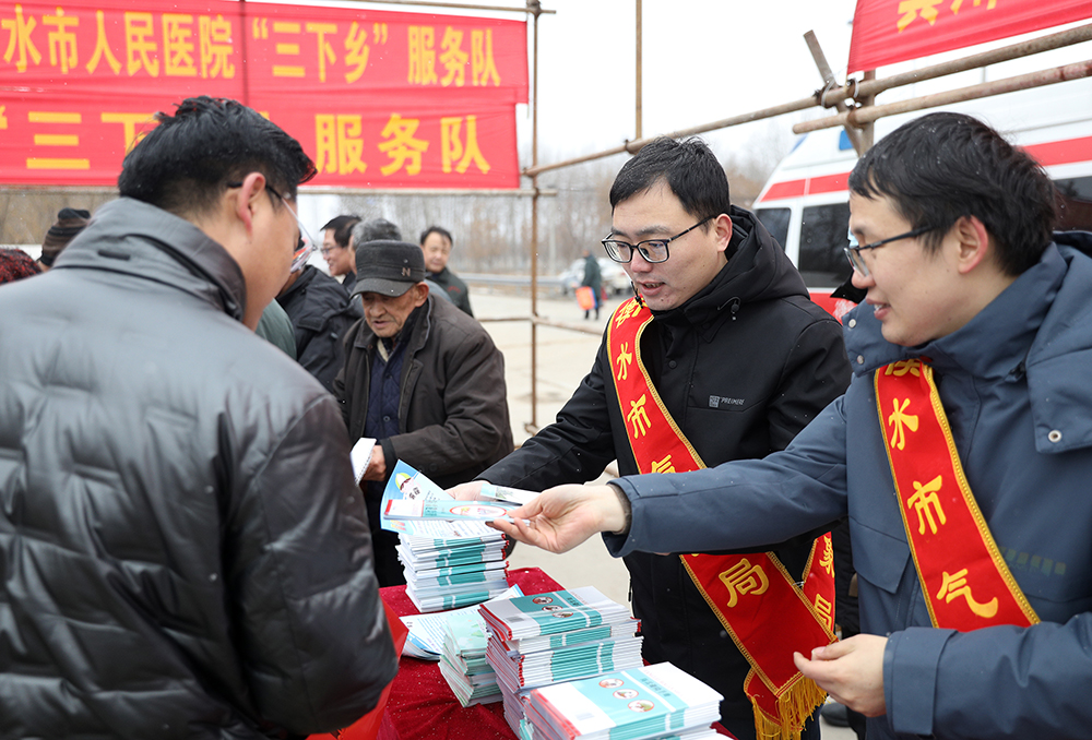 活動現場,來自五院、中醫院等醫院的醫務工作者、市文聯的文藝工作者、市氣象局、民政局科學技術局的專業技術人員、衡水市圖書館志愿者……為大家帶來義診服務、文藝表演、農業科學技術講解、書寫春聯等服務,滿足村民對健康和文化生活的需求。