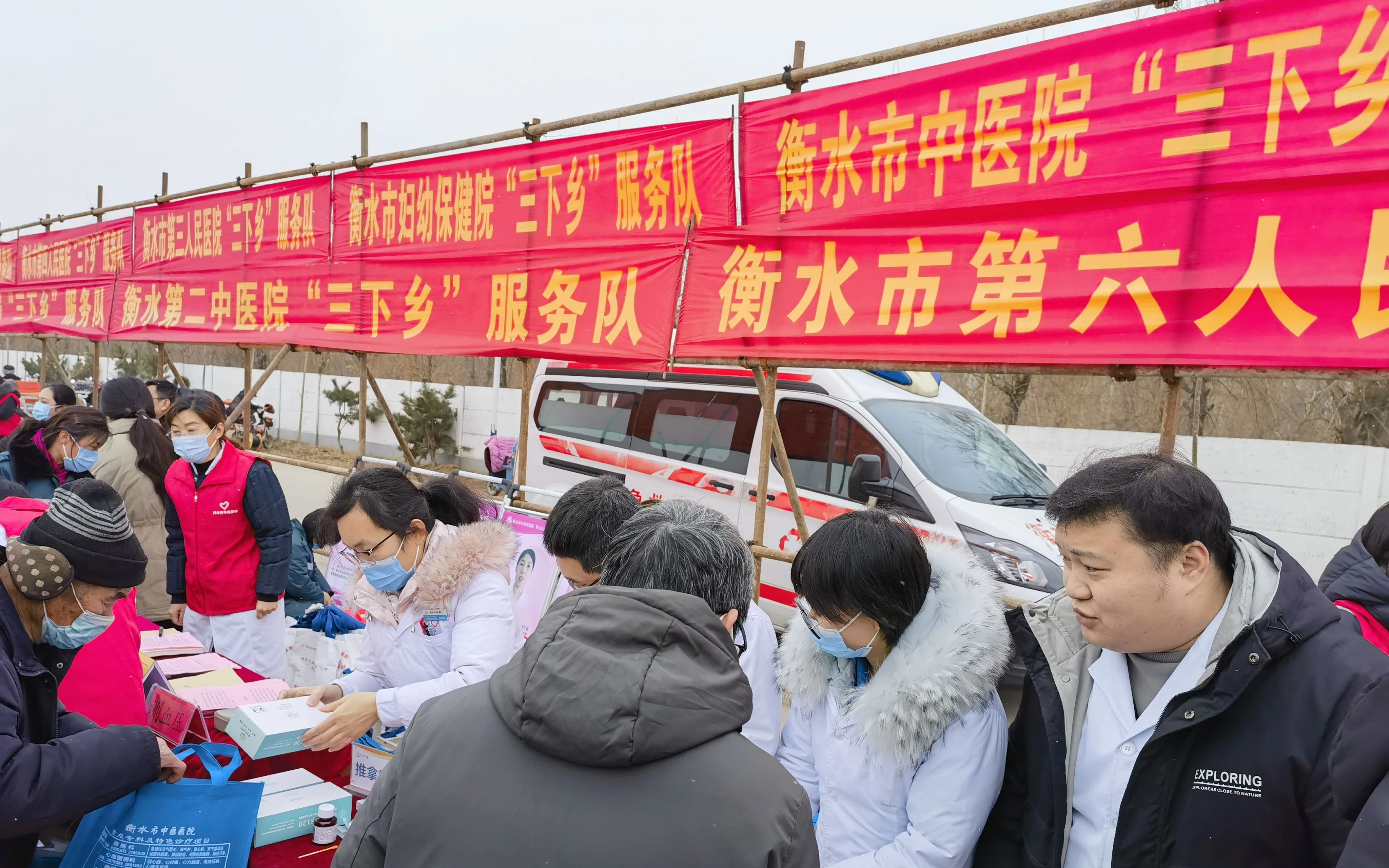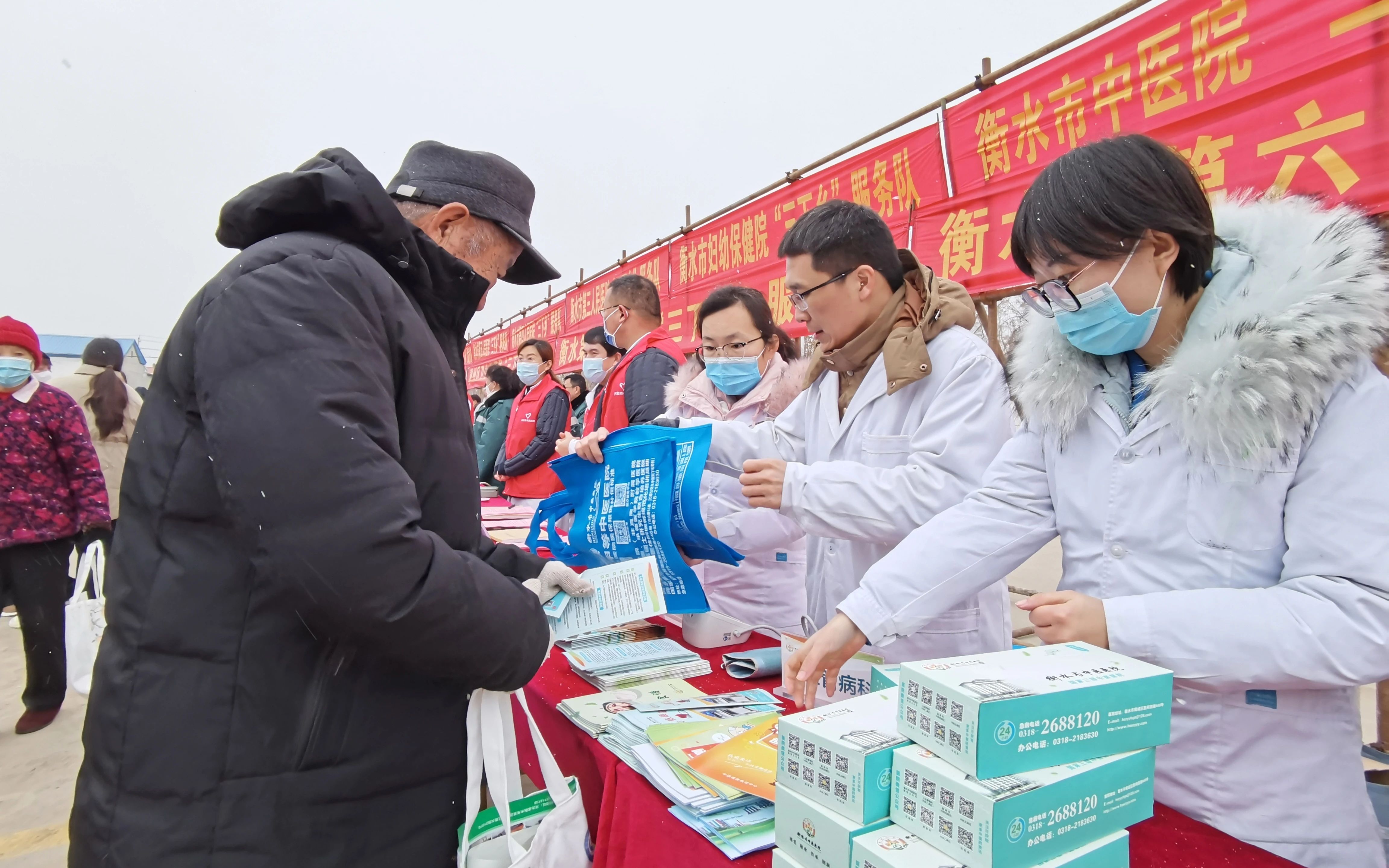 1月16日,衡水市中醫(yī)醫(yī)院積極響應(yīng)市委宣傳部號(hào)召,前往衡水市冀州區(qū)徐家莊鄉(xiāng)參加了衡水市“送政策、送服務(wù)、送和諧”文化科技衛(wèi)生三下鄉(xiāng)集中示范活動(dòng)。在小雪寒冷的天氣里,為當(dāng)?shù)剜l(xiāng)親們送去一股中醫(yī)藥健康暖流。