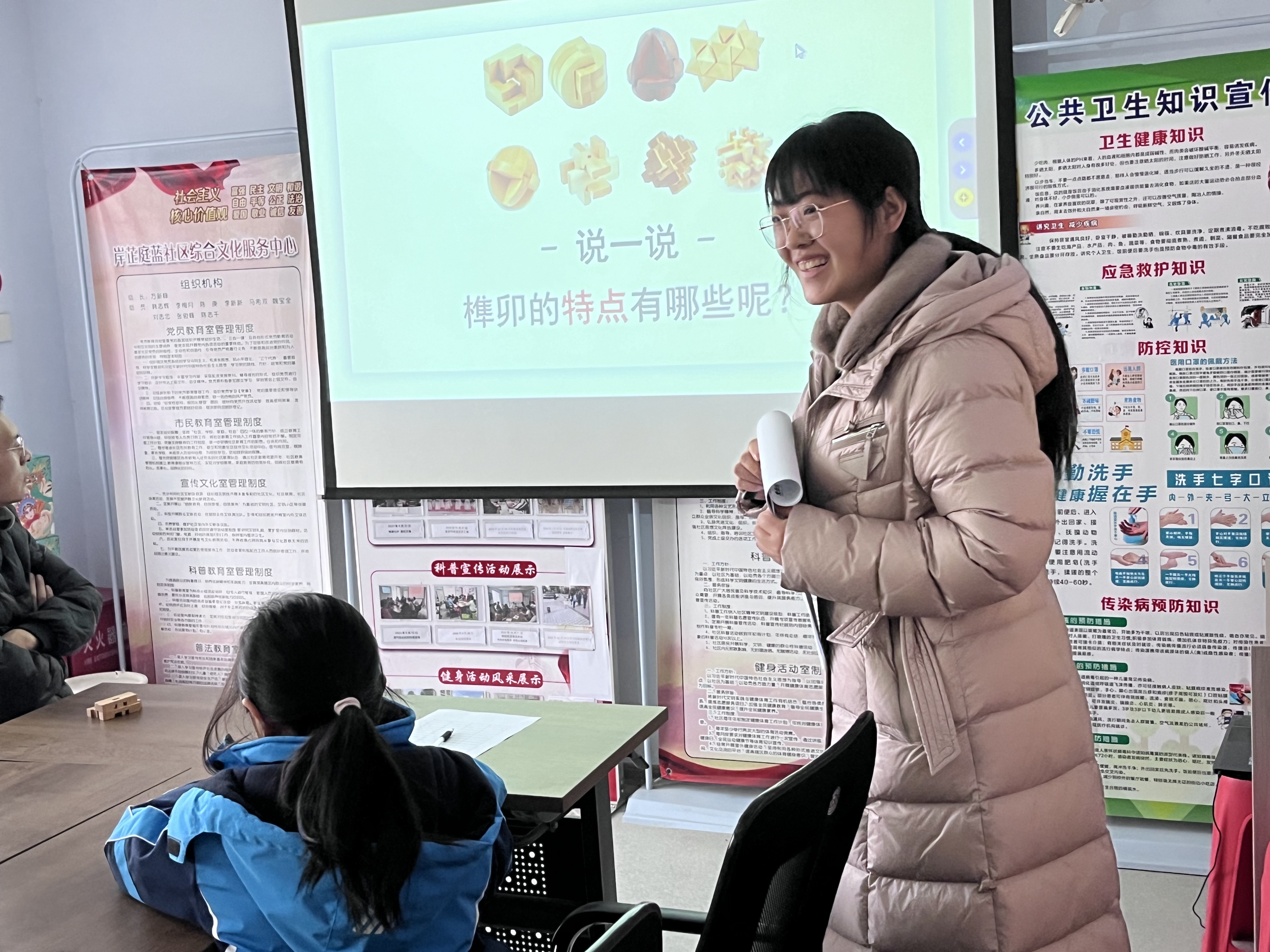 “孩子們,你們了解榫卯結(jié)構(gòu)嗎?你們知道古代的房子為什么至今不倒嗎?你們知道魯班鎖要怎么拆解組合嗎?”活動開始,社區(qū)主任簡海玲的一連串提問引起了孩子們的興趣。