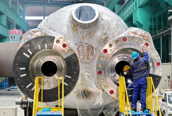 2003年,哈電集團看中我市優越的區位、交通優勢,選擇在我市布局,哈電集團(秦皇島)重型裝備有限公司應運而生。“十三五”期間,面對激烈的核電市場形勢,哈電重裝加強產品研發、提高創新能力,企業發展實現穩中有進。累計完工交付391臺套產品,其中,核電產品263臺套。核電產品覆蓋國內外20多個核電站,蒸汽發生器市場占有率達到國內行業第一。國產首臺AP1000蒸發器的生產成功,海外首臺華龍一號蒸發器、全球首臺高溫堆蒸發器等一系列重點產品的交付,大幅提升了公司形象和品牌影響力。公司生產制造部副經理王歡介紹,公司的生產經營態勢良好,截至目前,在手待執行訂單約70億元,大家對公司發展充滿了信心。
