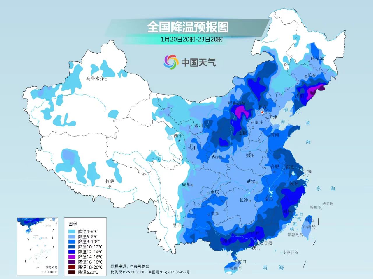 具體天氣預報為:1月22日,晴間多云,西北風2~3級,氣溫-2~-11℃;1月23日,晴,氣溫0~-9℃;1月24日,晴,氣溫4~-8℃;1月25日,多云,氣溫6~-7℃;1月26日,多云轉晴,氣溫7~-6℃;1月27日,晴,氣溫7~-7℃。