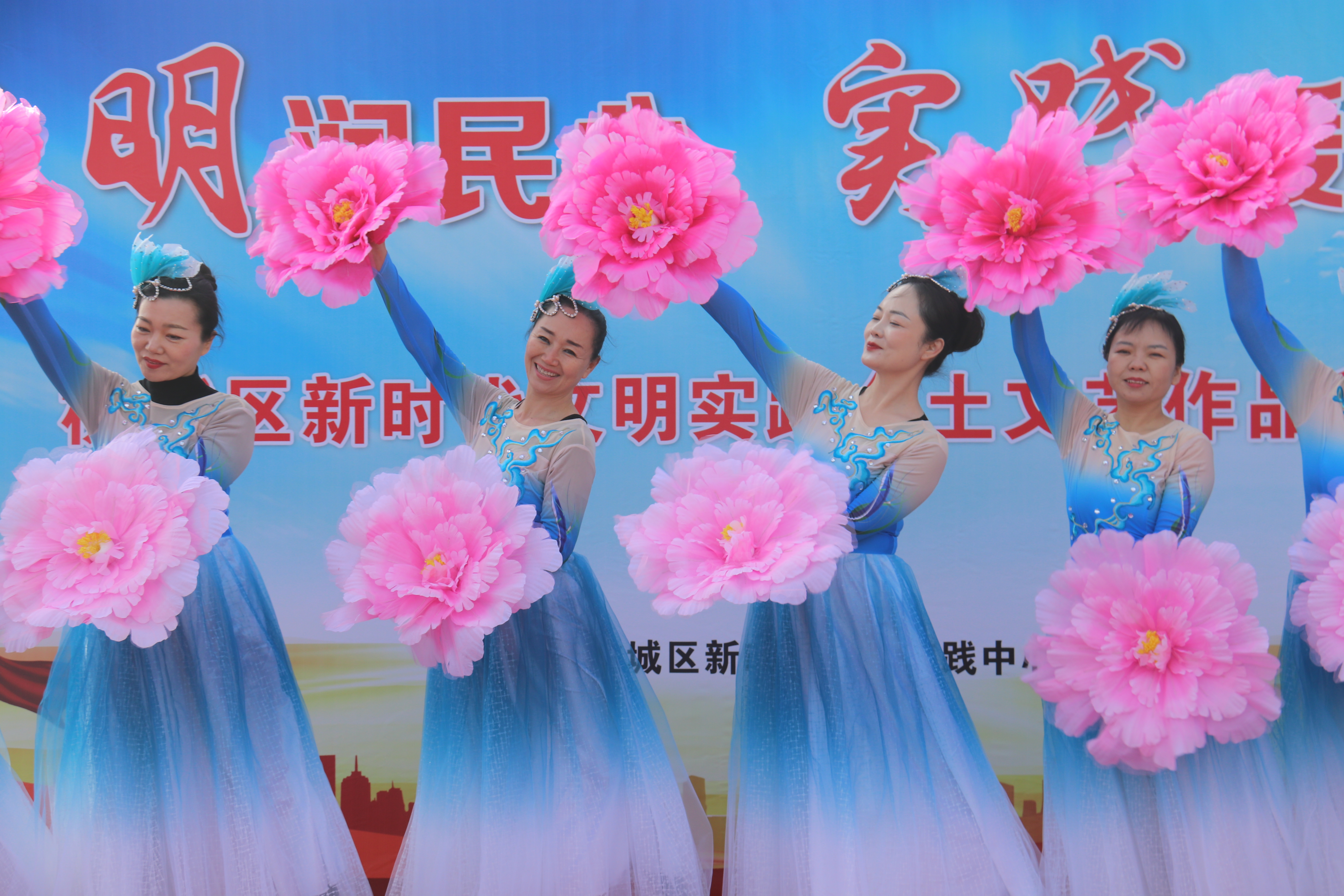 在義診區,醫護人員為鄉親們測量血壓、把脈,提供健康咨詢和講授疾病預防和衛生保健知識等服務。在“雙爭”宣傳區,工作人員邊有序發放手提袋、紙抽等宣傳品,邊向大家科普文明常識、創城知識。在集市一角,當地書法愛好者、書法家們揮毫潑墨,很快,群眾“點單”的一副副對聯和一張張“福”字新鮮“出爐”。來到集市中心,桃城區新時代文明實踐中心的文藝工作者們正現場表演,獨唱、戲曲、小品、三句半等精彩節目分外吸睛,歌曲《文明桃城謠》和快板《爭做文明人》更是唱出了文明、傳遞了新風尚。
