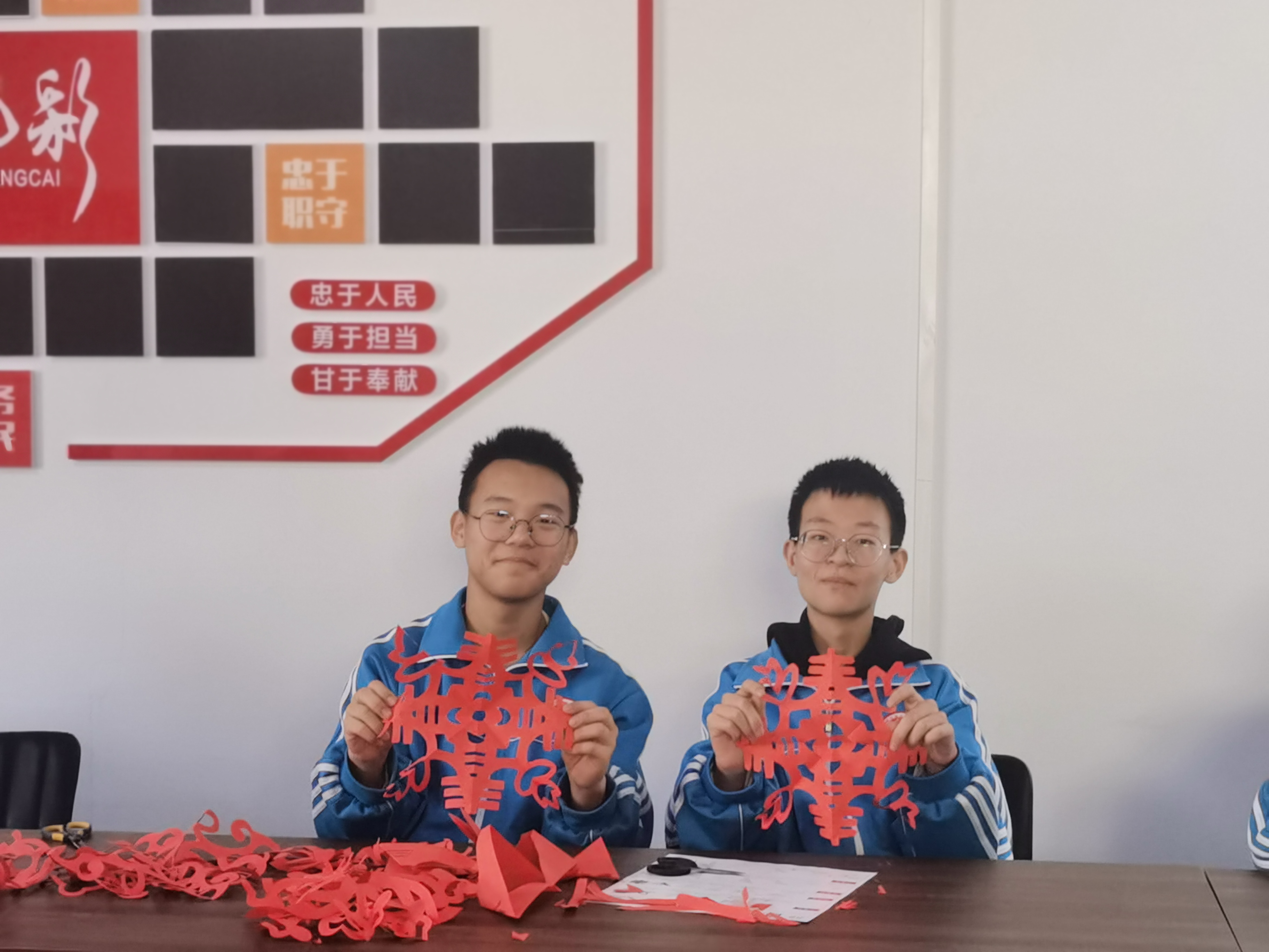 “剪紙藝術歷史悠久,貼窗花也是我們的傳統習俗。我們要把剪好的窗花送給工作在一線崗位的叔叔阿姨們,借著窗花的美好寓意,為他們送上新年祝福。”七年級學生李悅茹開心地說道。隨后七年級學生馬天成也笑著說:“今天我非常開心,既學習了傳統文化,又感受到了濃濃年味兒?!?/p>