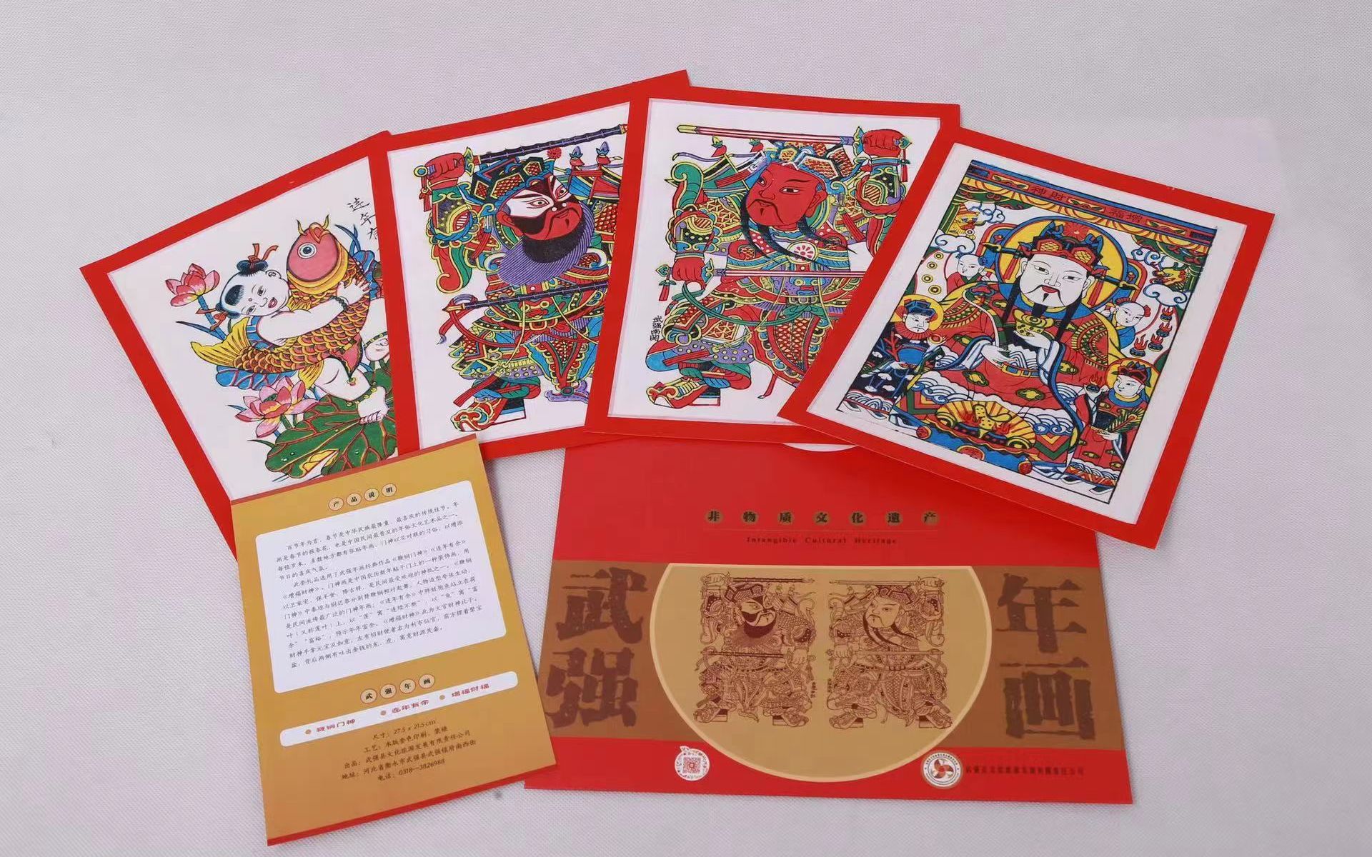 為了讓僑胞真正感受到武強年畫的藝術魅力和文化內涵,武強縣文化旅游發展有限責任公司精心選取了武強年畫最具代表性的經典作品《鞭锏門神》一對、《連年有余》《增福財神》各一幅組成新春大禮包。
