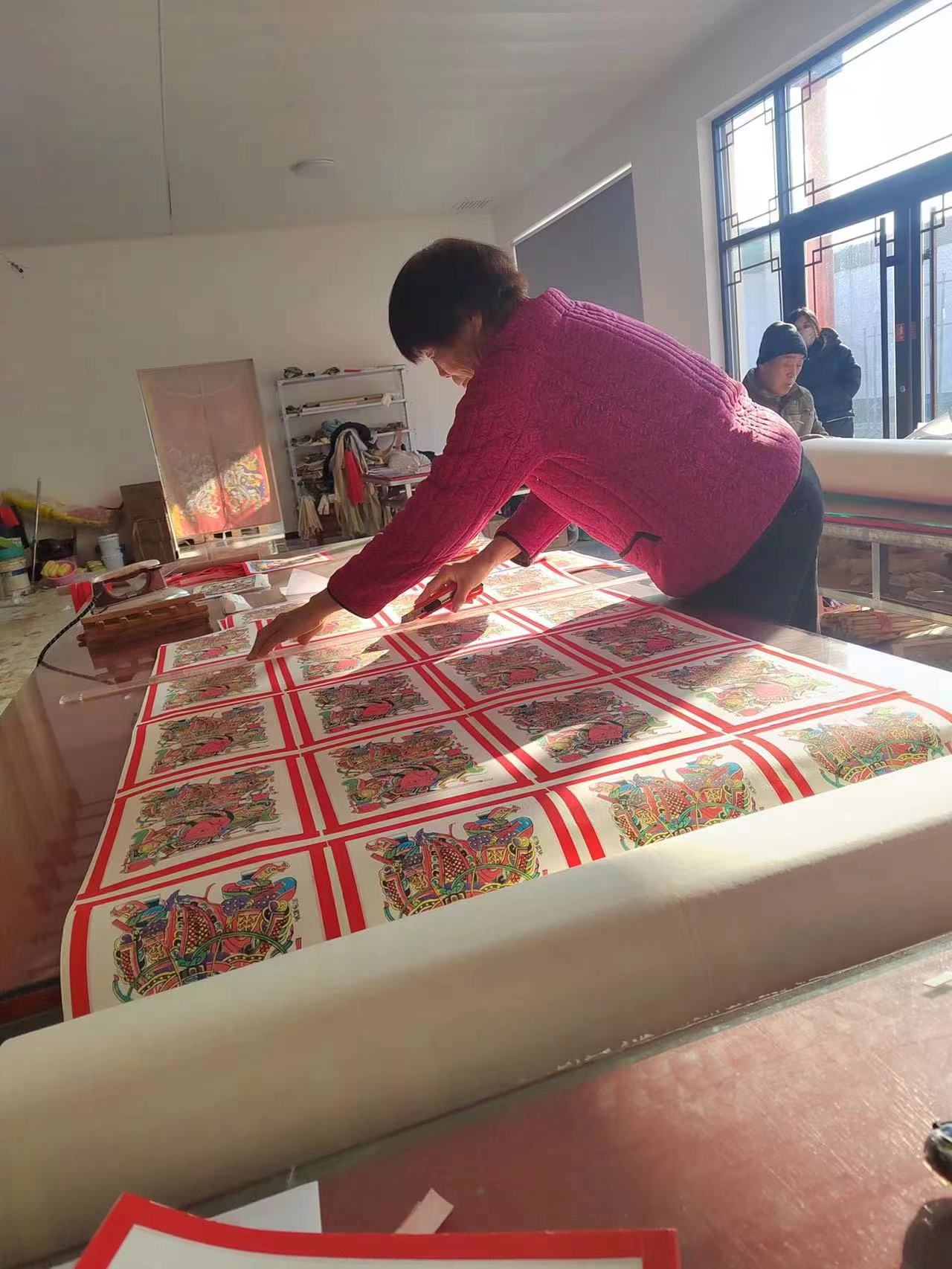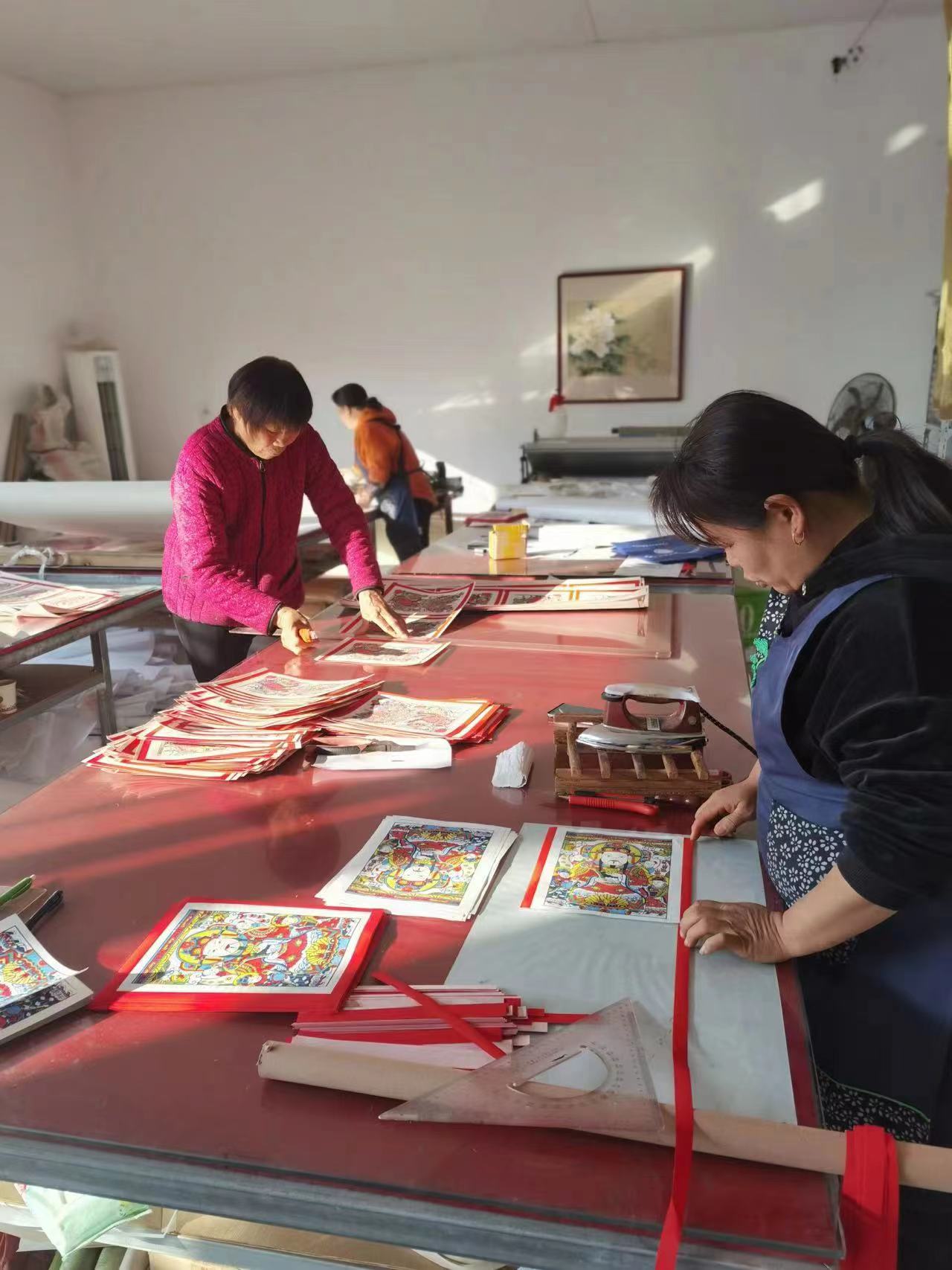 武強年畫禮包共4000套,每套4幅經典年畫,總數16000張,采用傳統技法手工完成。武強縣文化旅游發展有限責任公司董事長劉默介紹,公司專門聘請了國家級非物質文化遺產武強木版年畫代表性傳承人馬習欽作為顧問和技術總指導,并由其親自操刀完成部分刻版和印刷任務。同時,組織發動3家年畫印刷作坊共8名印刷師、5家裝裱作坊共20名裝裱師及文旅公司全體人員投入到禮品制作中,終于按時間節點高質量完成了年畫制作任務。禮品的包裝、說明圖冊等力求體現武強年畫藝術元素和地方特色,并按國際通用標準和質量要求,聘請省內專業公司設計、制作完成。