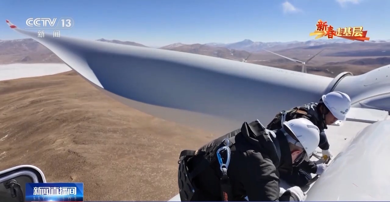 世界海拔最高的風電場——西藏措美哲古風電場,去年10月份正式投入使用。春節將近,現場的運維師傅們在海拔5000多米的高原上檢修風機,保障當地14萬個家庭的用電。