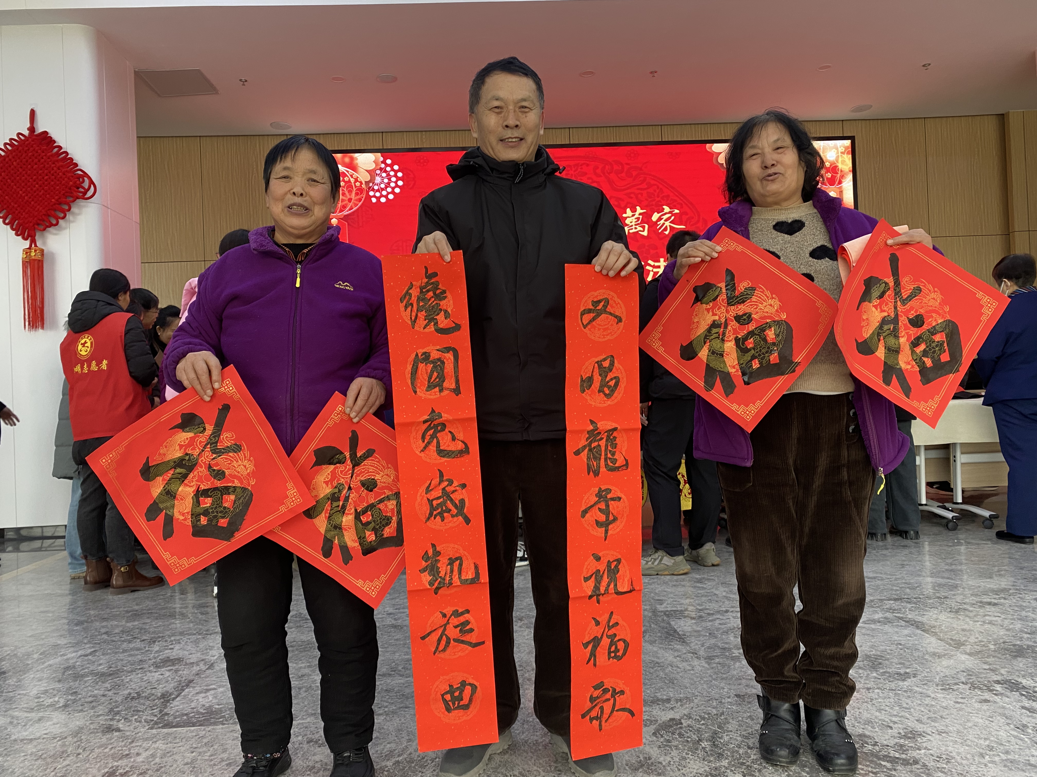 “春來大地花開早,福滿人間喜事多”“龍騰虎躍新時代,強國富民好運程”一行行俊逸的書法,一句句真誠的祝福,深受群眾感動和喜愛。“送萬福,進萬家”書法公益活動現場洋溢著濃濃的年味。