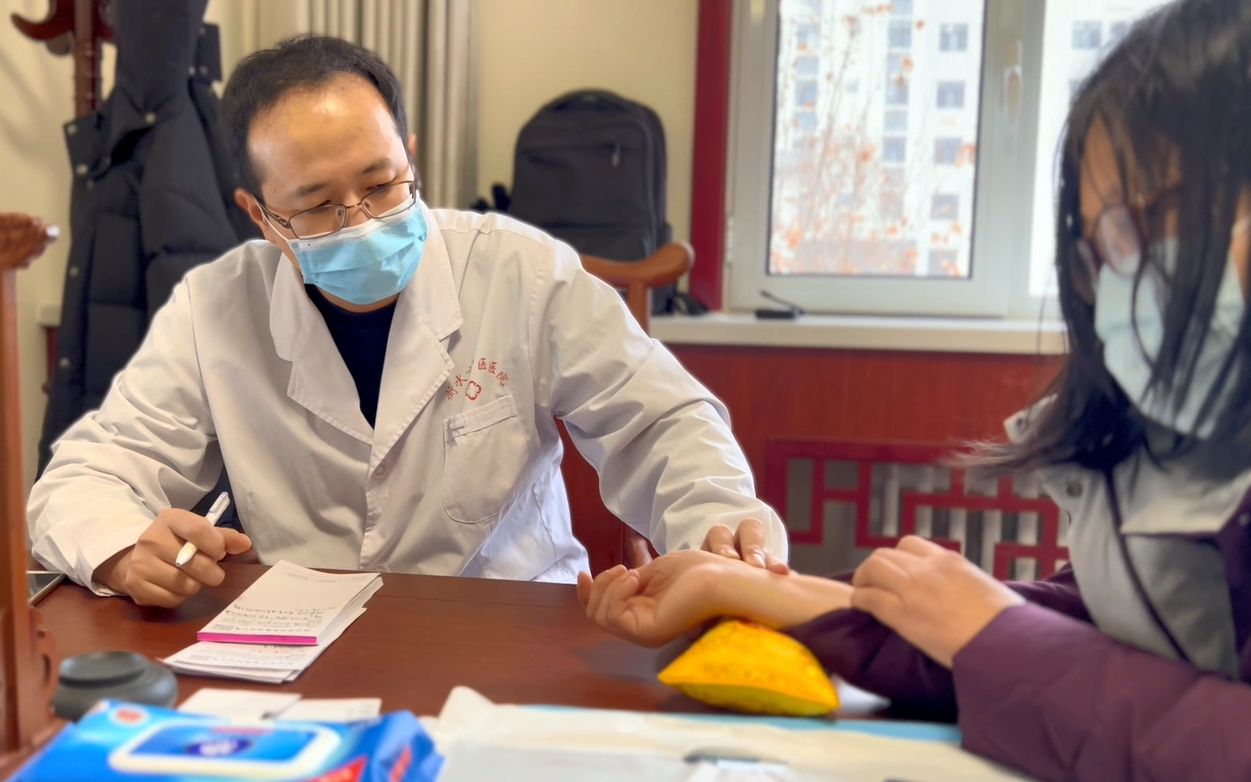 ▲北京市鼓樓中醫醫院專家黃洪偉為患者診治